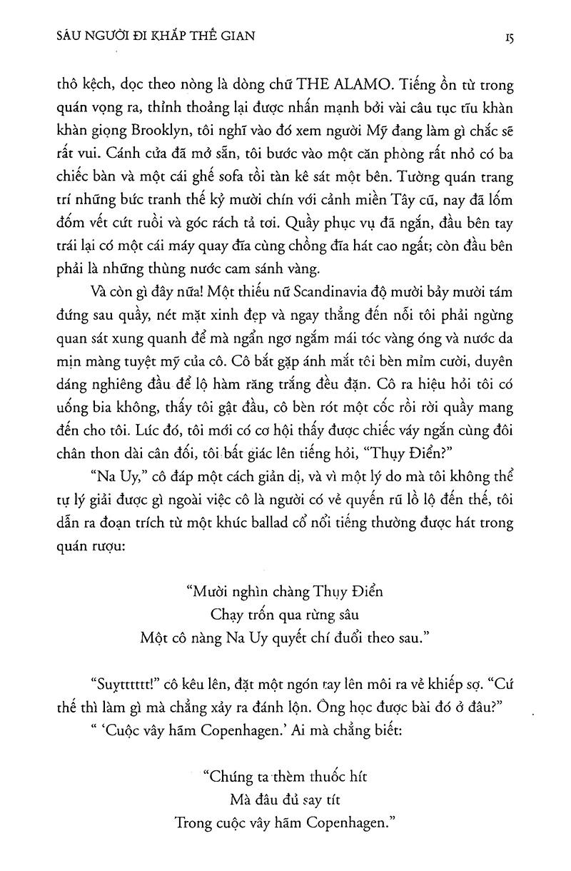 Như một bách khoa thư kết hợp nhuần nhuyễn s.úng ống và hoa hồng, tình yêu và tình dục, tôn giáo và nghệ thuật, du hành và túy, những bản ballad say lòng và tiếng kêu thầm xé ruột, có thể nói Sáu người đi khắp thế gian là một cuốn tiểu thuyết độc nhất vô nhị không bao giờ cũ về cuộc sống…