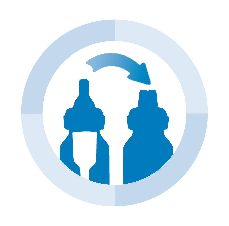 • Bình sữa, bộ hệ thống van khí, núm ty, nắp đậy bình sữa, cổ bình sữa, có thể rửa bằng máy rửa chén (bát) (giá trên cùng), hoặc tiệt trùng bằng máy tiệt trùng chuyên dụng