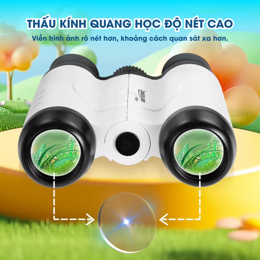 Ống nhòm nhỏ gọn dành cho trẻ em, phóng đại 4X, hình ảnh rõ nét, dễ dàng điều chỉnh tiêu cự 360°. Trang bị thêm la bàn định hướng, lý tưởng cho các chuyến dã