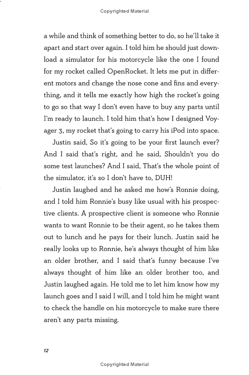 11-year-old Alex Petroski loves space and rockets, his mom, his brother, and his dog Carl Sagan--named for his hero, the real-life astronomer. All he wants is to launch his golden iPod into space the way Carl Sagan (the man, not the dog) launched his Golden Record on the Voyager spacecraft in 1977. From Colorado to New Mexico, Las Vegas to L.A., Alex records a journey on his iPod to show other lifeforms what life on earth, his earth, is like. But his destination keeps changing. And the funny, lost, remarkable people he meets along the way can only partially prepare him for the secrets he'll uncover--from the truth about his long-dead dad to the fact that, for a kid with a troubled mom and a mostly not-around brother, he has way more family than he ever knew.