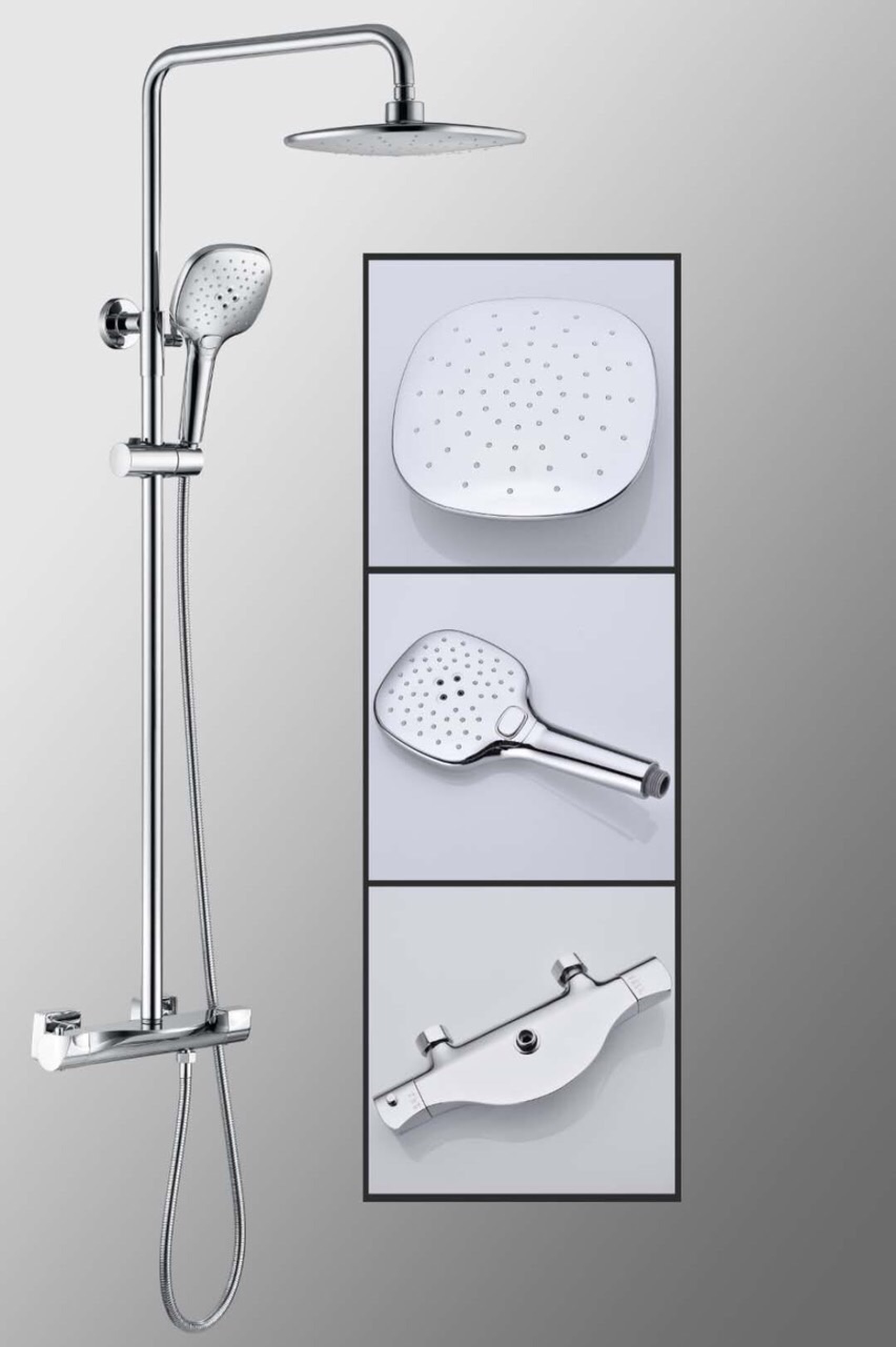 Combo củ sen tay sen nóng lạnh inox 304 sơn xám Hobby home decor CBX1 Thông tin kỹ thuật - Chất liệu chính: Inox 304, nhựa ABS cho lưới phun - Trọng lượng củ sen: