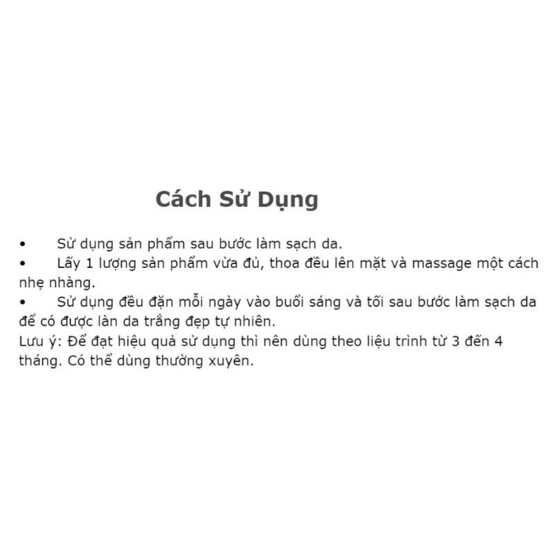 Sử dụng đều đặn mỗi ngày vào buổi sáng và tối sau bước làm sạch da để có được làn da trắng đẹp tự nhiên.
