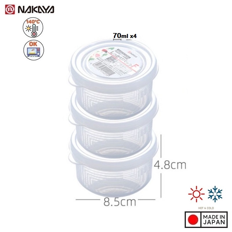 Set 04 hộp trữ thức ăn dặm cho bé Nakaya S 70mlx4 thích hợp dùng trong lò vi sóng - Nhập khẩu từ Nhật Bản.