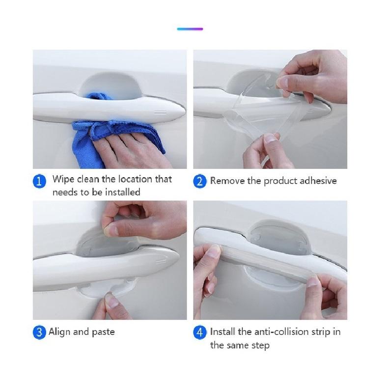 Miếng dán chống xước hõm, tay nắm cửa ô tô được làm từ chất liệu silicone trong suốt, giúp bảo vệ hõm tay nắm cửa ô tô không bị xước, giúp ô tô luôn sáng bóng.