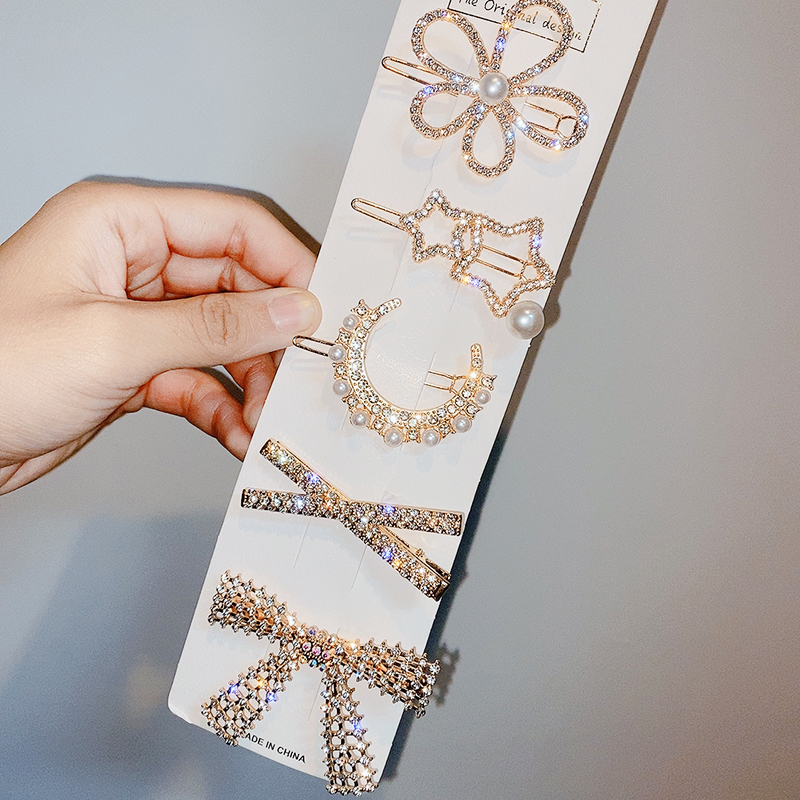 -Sét kẹp tóc 5-6 món cao cấp , thiết kế độc lạ , kim loại đính hạt , tạo hình tinh xảo ,cho bạn gái làm đẹp mỗi ngày -Xuất xứ : Trung Quốc -Bộ