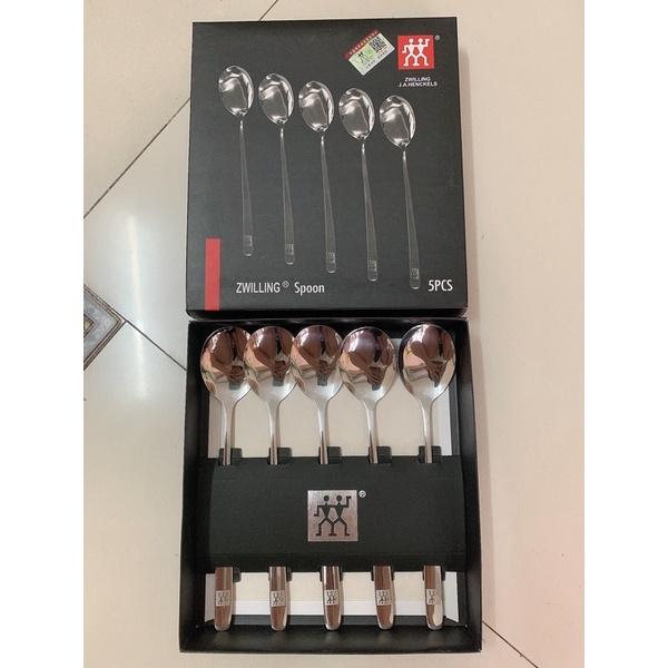 Gia Dụng - Set 5 thìa ZWILLING, muỗng inox STAINLESS STEEL, sâu lòng, cán dày, sáng bóng, kèm hộp