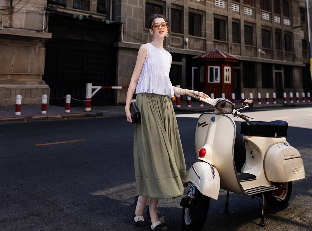 Chân váy dài xòe sang trọng thanh lịch fashion 2024