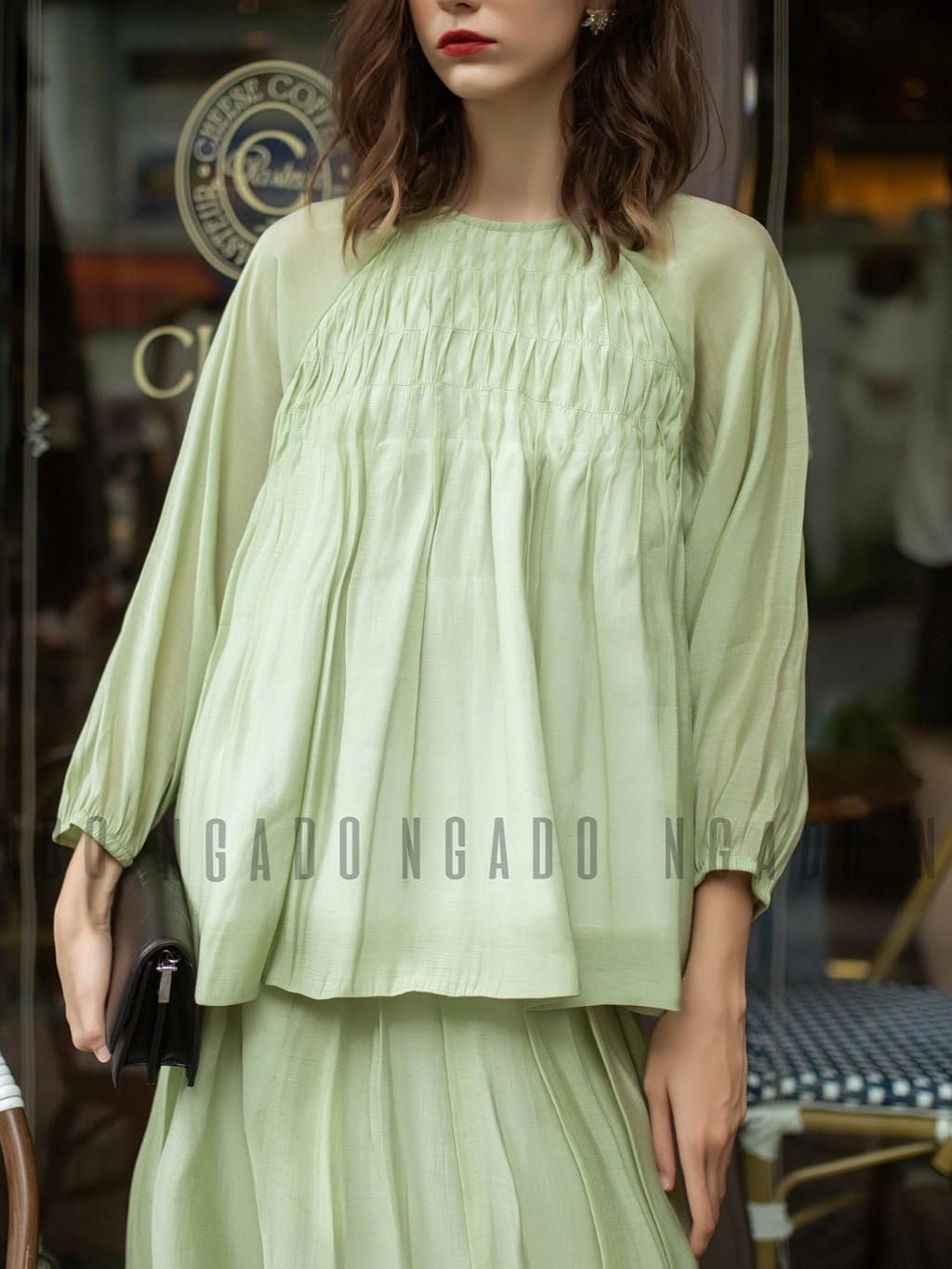🔥 OUTFIT NGỌT NGÀO - SET Áo Voan Tơ Tay Dài + Chân Váy Bèo – Nàng Nào Cũng Cần Có!