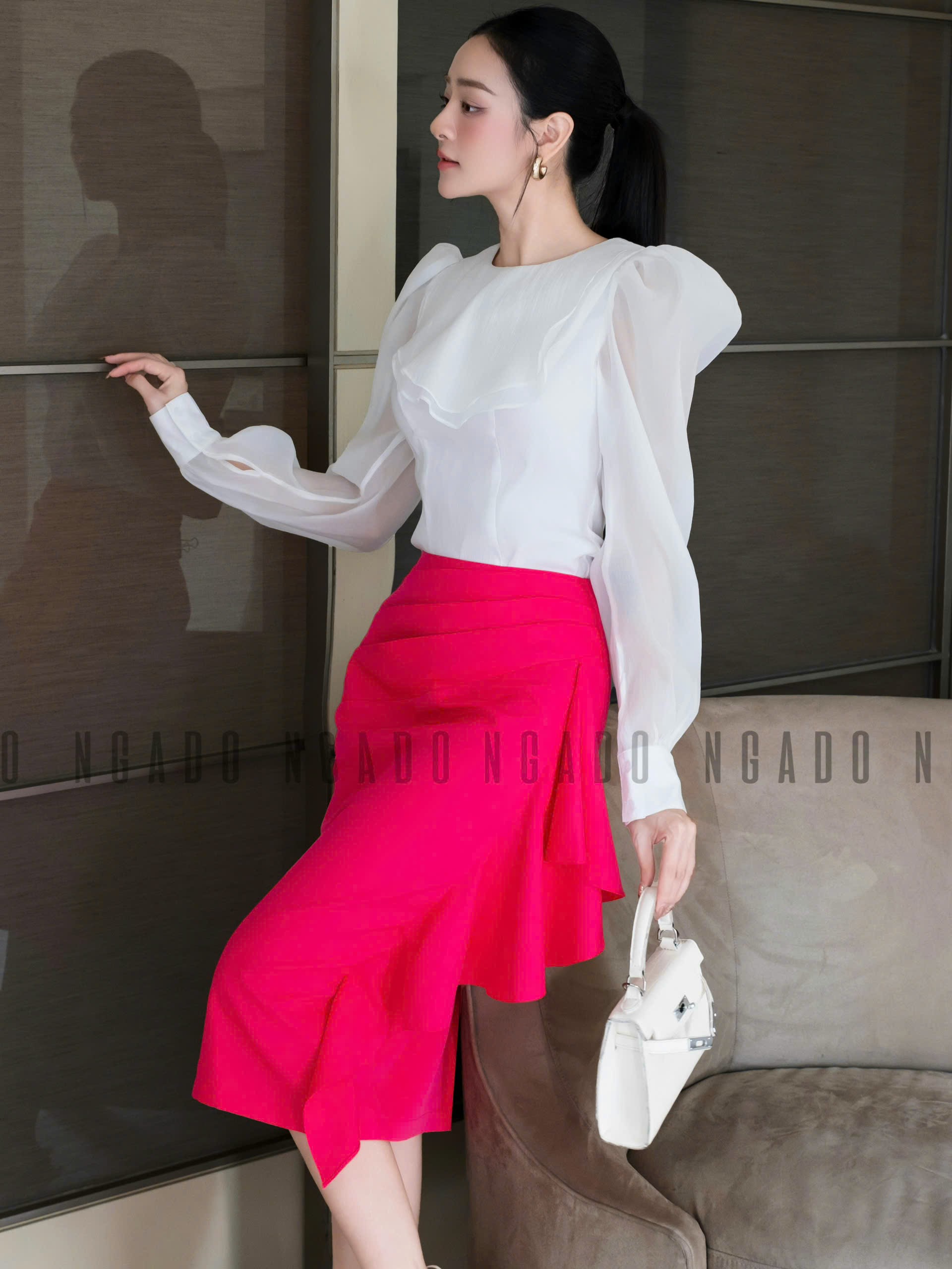✨Set áo voan trắng váy hồng sen NGADO , set áo kèm chân váy , set áo váy Nữ