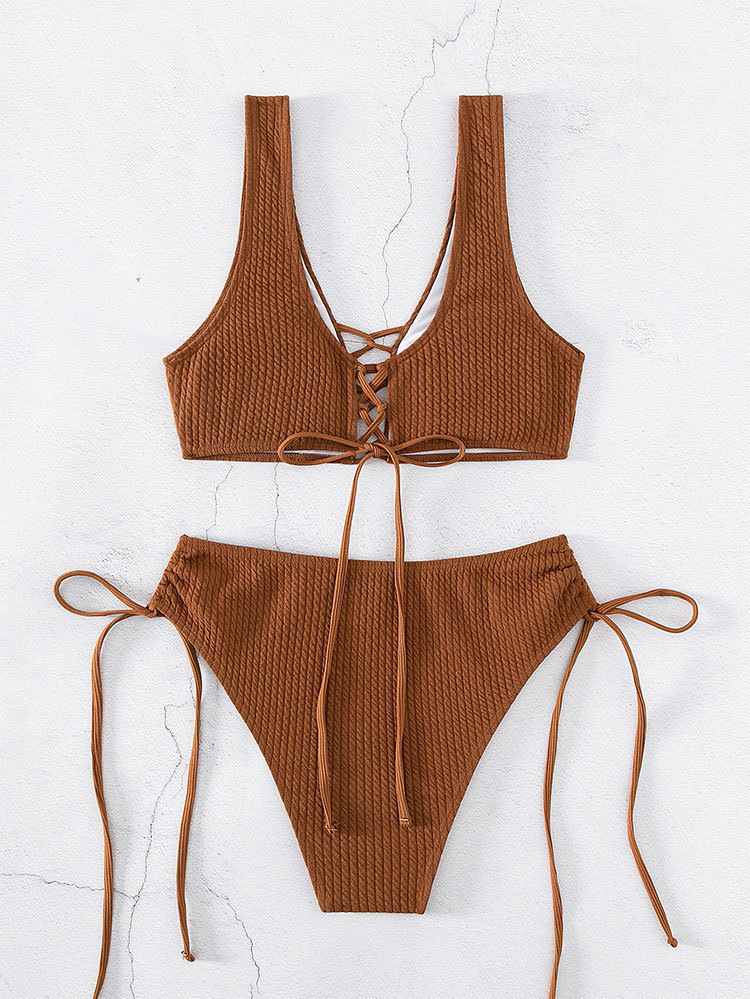 Bikini Tam Giác Kèm Khăn Lưới Chất liệu Polyester Đây là chất liệu không quá xa lạ đối với may đồ bơi nữ. Sợi Polyester rất nhẹ, có khả năng chống thấm và khô nhanh.