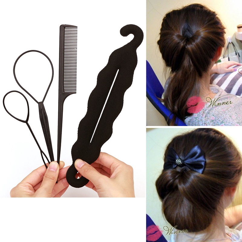 ✨Set Dụng Cụ Tạo Kiểu Tóc 4 Sản Phẩm, Màu Đen, Nhỏ Gọn, Dễ Sử Dụng, Bới Tóc Tạo Những Phong Cách Khác Nhau Trẻ Trung, Quyến Rũ, Tiết Kiệm Thời Gian Tạo Kiểu Hàng Ngày Hoặc Tham Gia Sự Kiện, Chất Liệu Nhựa Dẻo, Độ Bền Cao, Phát Huy Ý Tưởng Sáng Tạo