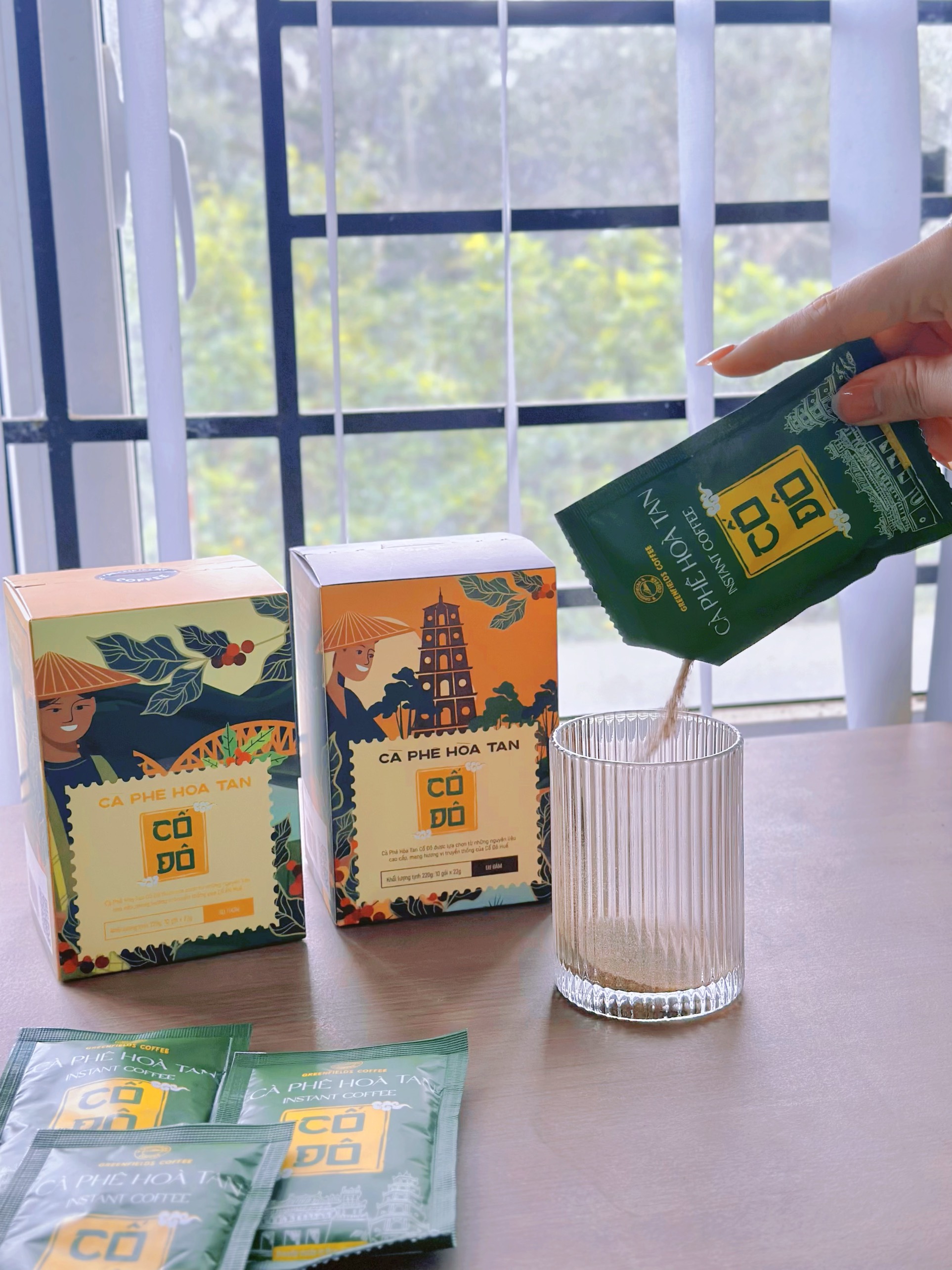 2 hộp cà phê hoà tan: 1 hộp cà phê Cố Đô gu đậm (hộp 10 gói x 22g) và 1 hộp cà phê hoà tan Cố Đô gu thơm (hộp 10 gói x 22g)