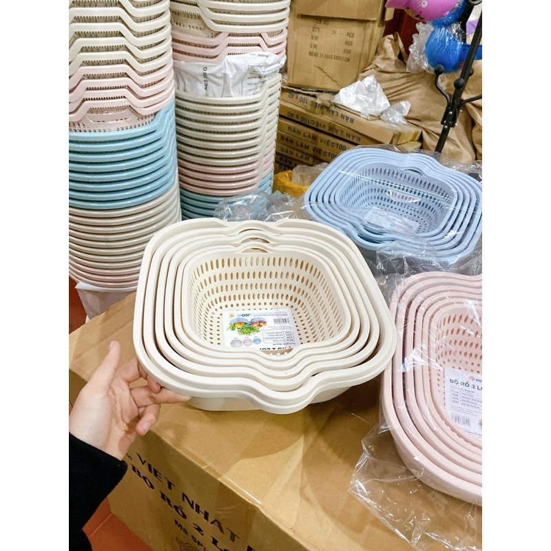 ✨Sét Thau Rỗ Nhựa Đựng Rau Củ Quả 6 Món 3 Kích Thước Đa Năng Việt Nhật - Hàng Việt Nam