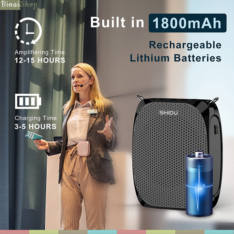 LOA TRỢ GIẢNG SHUAE SM-918 - MÁY TRỢ GIẢNG KÈM MICRO CÀI TAI KHÔNG DÂY - KẾT NỐI BLUETOOTH, AUX, USB, SD CARD, FM - CÔNG SUẤT 15W - CÓ ECHO HÁT KARAOKE DỄ DÀNG