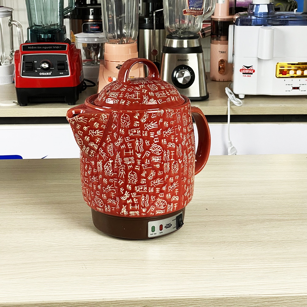 Dung tích: 2.8 L- Công suất: 450W- Thân ấm thiết kế với hoa văn ông già - củ sâm- Nguồn gốc sứ từ làng gốm Bát Tràng nổi tiếng- Chất liệu gốm được nung ở