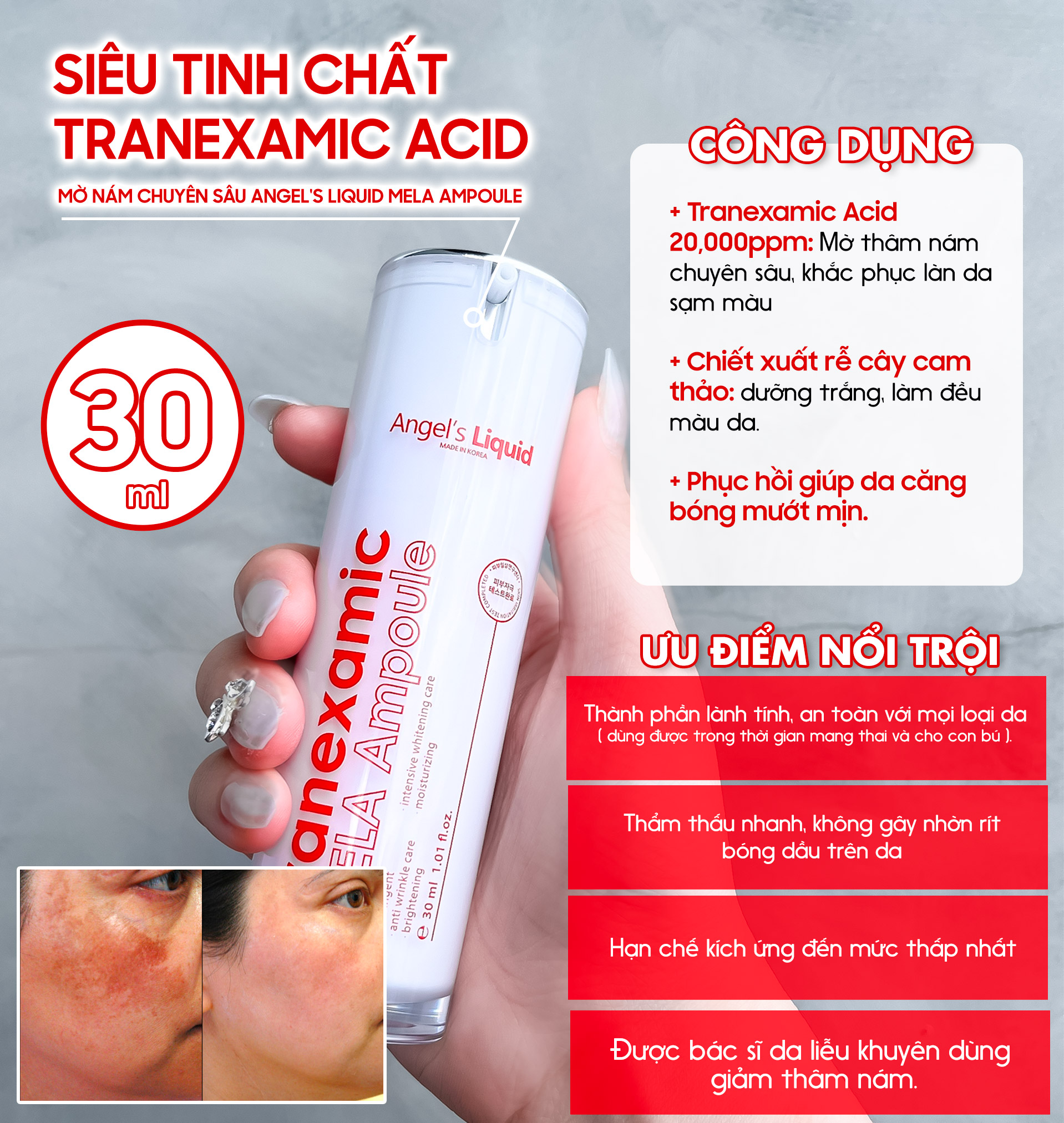 Review Kem Trị Nám Chuyên Sâu Angel's Liquid Tranexamic