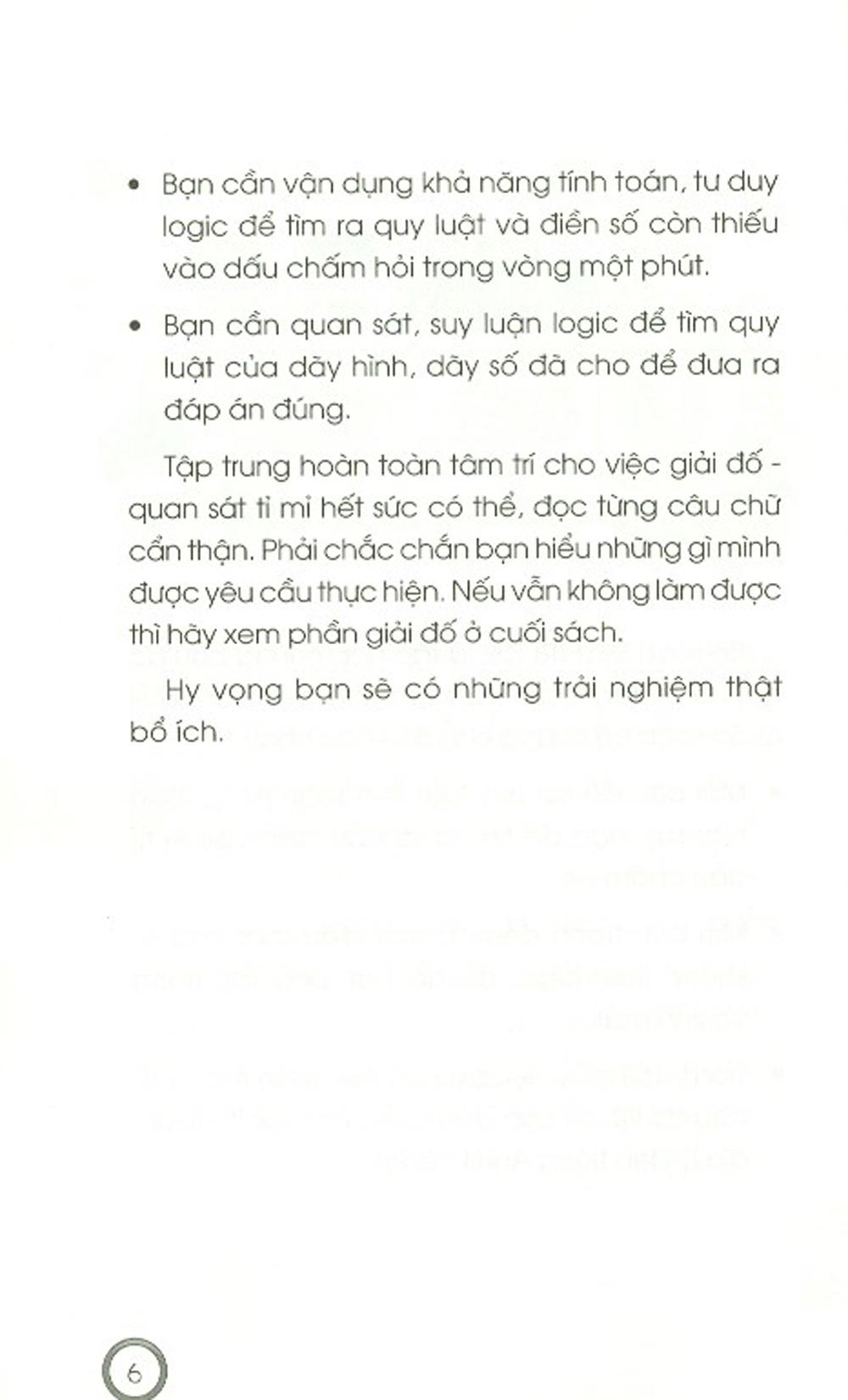 Tập trung hoàn toàn tâm trí cho việc giải đố - quan sát tỉ mỉ hết sức có thể, đọc từng câu chữ cẩn thận. Phải chắc chắn bạn hiểu những gì mình được yêu cầu thực hiện. Nếu vẫn không làm được thì hãy xem phần giải đố ở cuối sách.