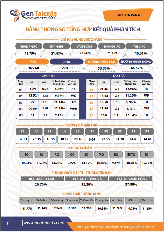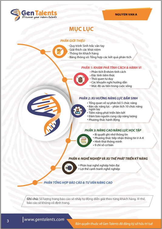 NỘI DUNG CHÍNH CỦA BÀI BÁO CÁO SINH TRẮC VÂN TAY GEN TALENTS – BẢN ĐẦY ĐỦ 4 MODULE: