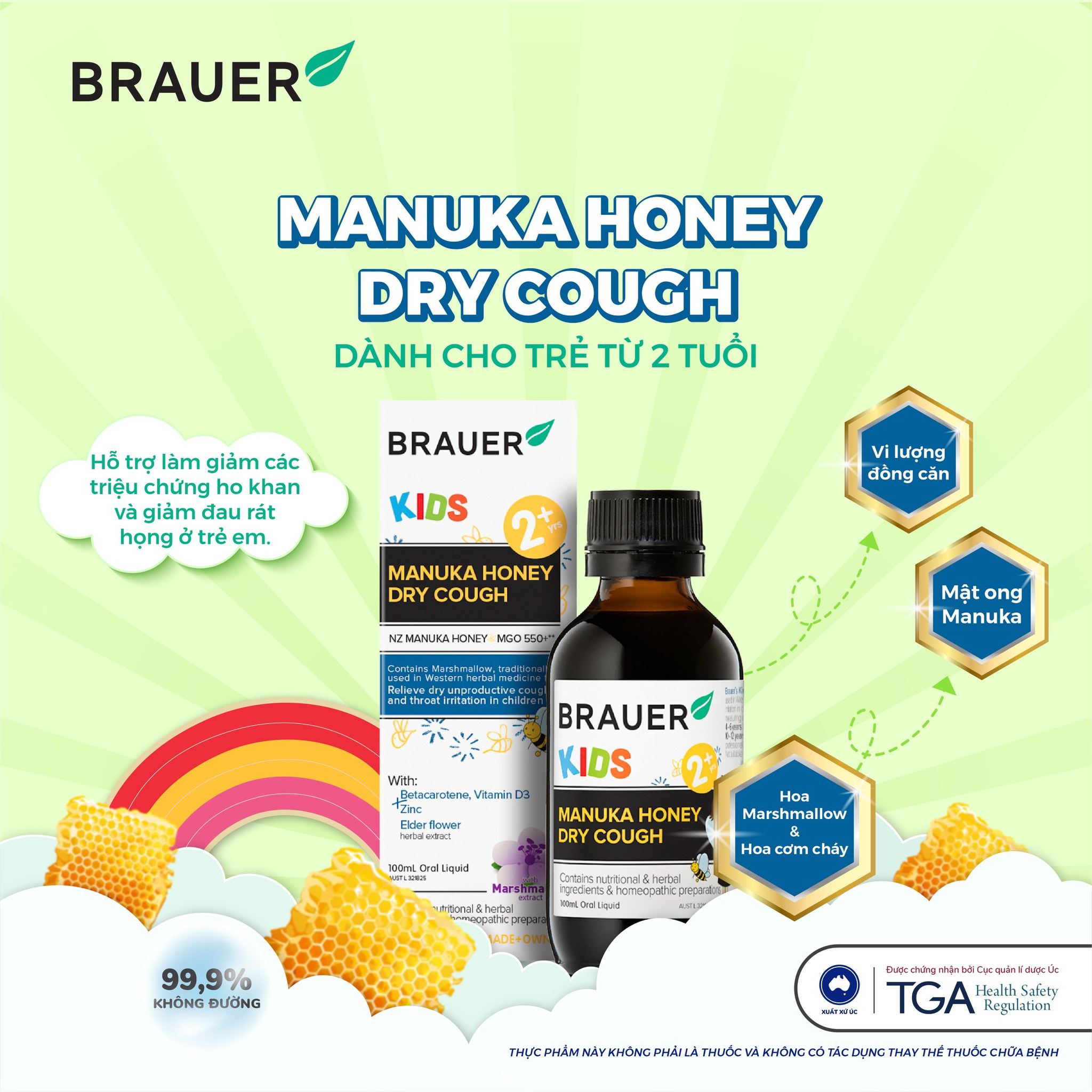 + Brauer Kids Manuka Honey Dry Cough - giảm ho khan