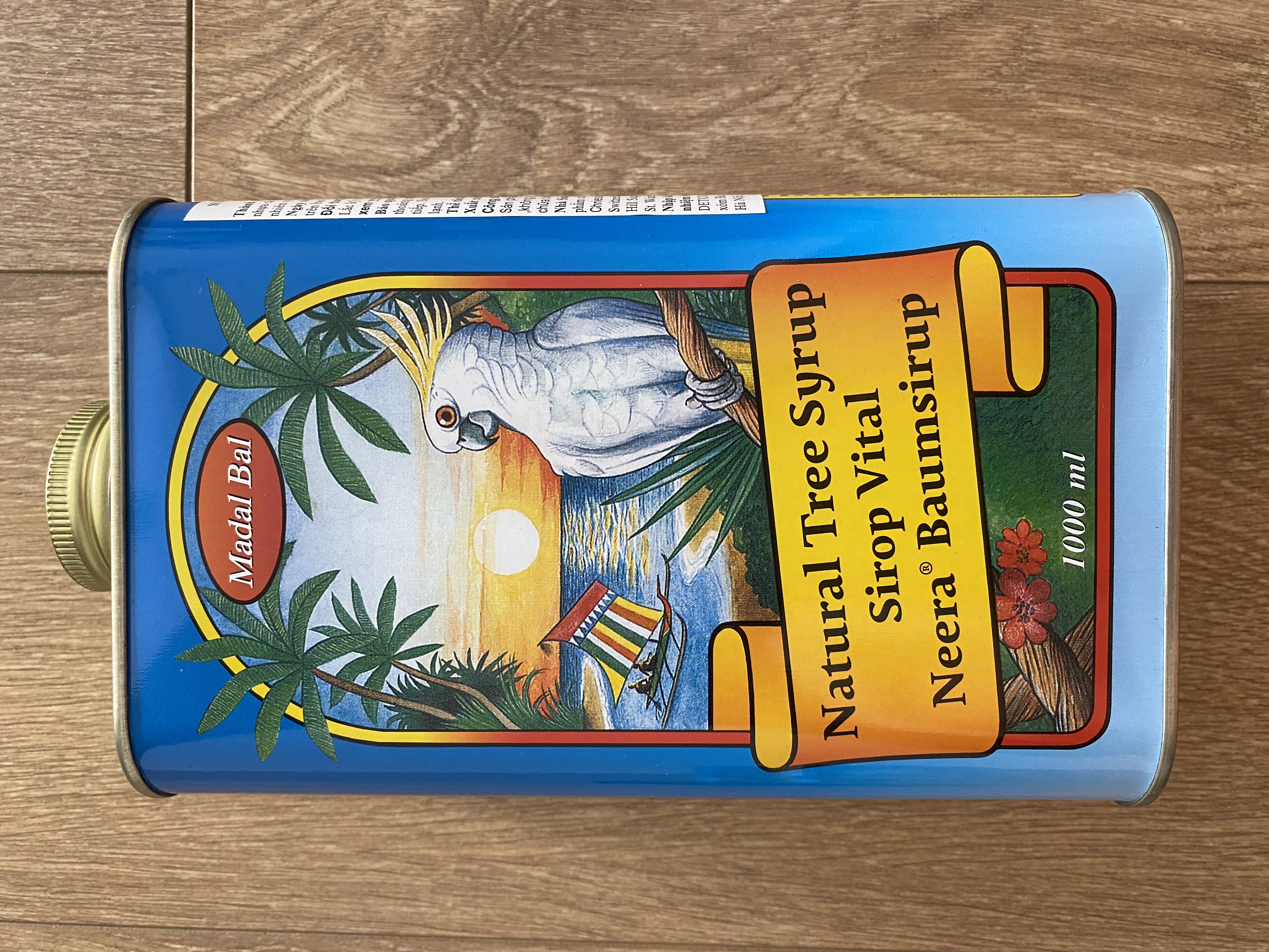 Mỗi lon tặng kèm cốc đong, bột ớt, bột gừng Là Siro của thương hiệu Madal Bal Neera với tên dòng sản phẩm là Natural Tree Syrup. Hạn sử dụng: Hàng mới Thể tích: 1000ml