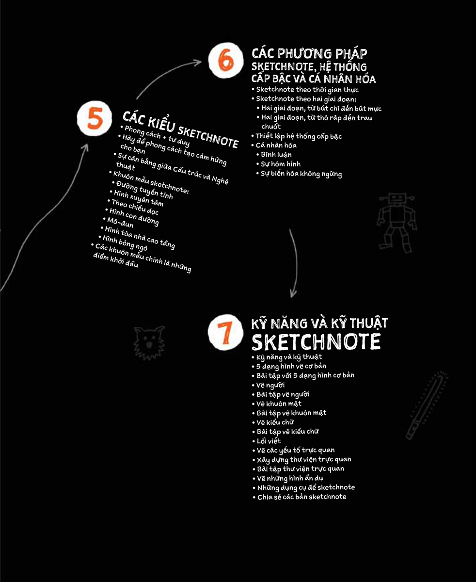 Sketchnote Lý Thuyết minh họa đầy đủ về câu chuyện sketchnote – tại sao và cách nào bạn có thể sử dụng chúng để nắm bắt tư duy của mình một cách trực quan, ghi nhớ thông tin rõ ràng hơn và chia sẻ những gì bạn ghi chép cho những người khác. Cuốn sách cũng giải thích các kỹ thuật sketchnote cho việc ghi chú trực quan theo tốc độ ghi chép của bạn cũng như trong thời gian diễn ra sự kiện. Tác giả Mike Rohde cũng cho bạn thấy cách kết hợp các kỹ thuật này vào quá trình ghi chép – bất kể khả năng nghệ thuật của bạn ra sao – để giúp bạn xử lý thông tin mà bạn đang nghe tốt hơn và biến quá trình ghi chép vốn nhàm chán trở nên thú vị.