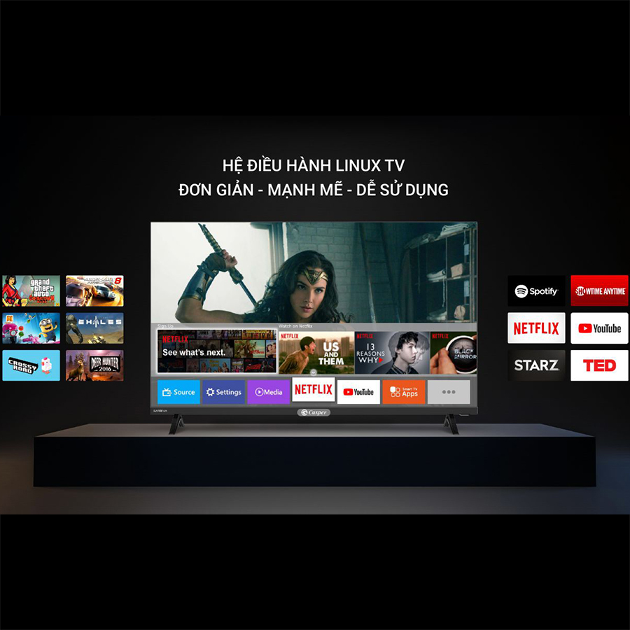 Hệ điều hành Linux với giao diện đơn giản, dễ sử dụng và được cài đặt sẵn 36 ứng dụng bản quyền phổ biến cả trong nước và quốc tế như Netflix, Prime Video, FPT Play, Nhaccuatui… giúp nâng tầm trải nghiệm giải trí mà vẫn đảm bảo an toàn và bảo mật cho người sử dụng.