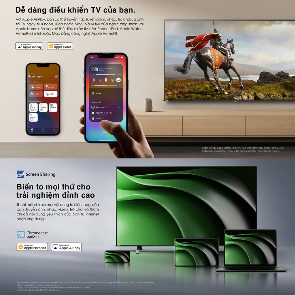 - Apple Feature: cũng là chia sẽ màn hình điện thoại lên tivi nhưng dành riêng cho các sản phẩm Apple
