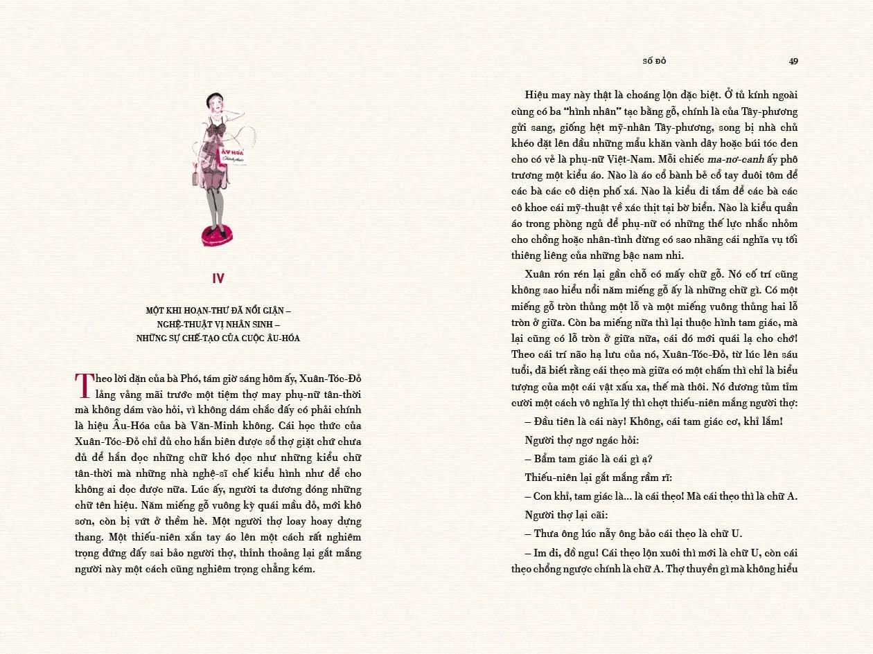 “ Cứ mỗi khi chiều về, trong ánh đỏ tưng bừng của lửa điện phố phường, mà trông thấy những người vừa đây đương xấu thoắt giờ đã đẹp, những người vừa mới đây đương nghèo thoắt giờ đã sang, tại sao cứ trông thấy thế thì tôi lại nghĩ ngay đến cuốn tiểu thuyết Số đỏ của Vũ Trọng Phụng, bạn tôi?”