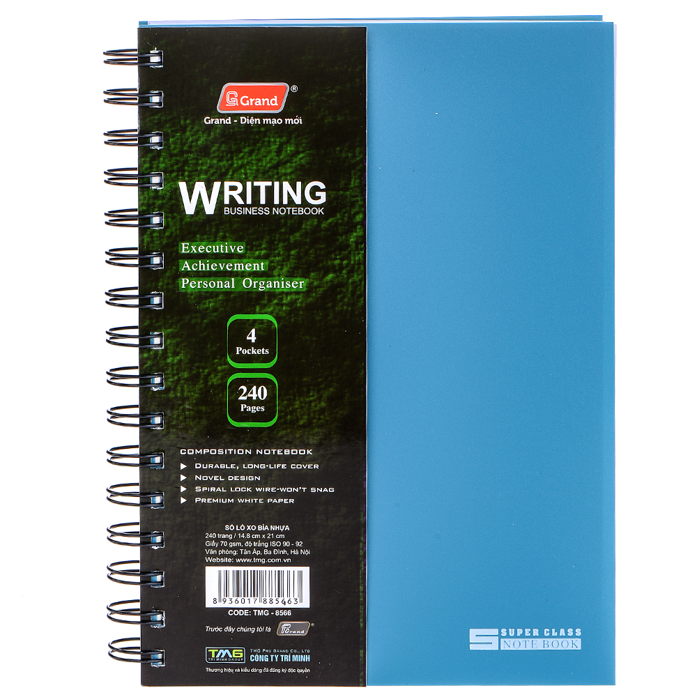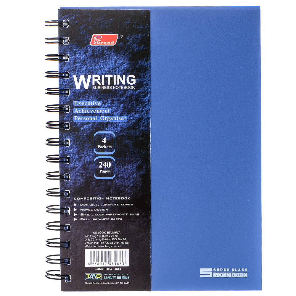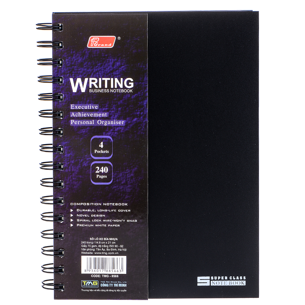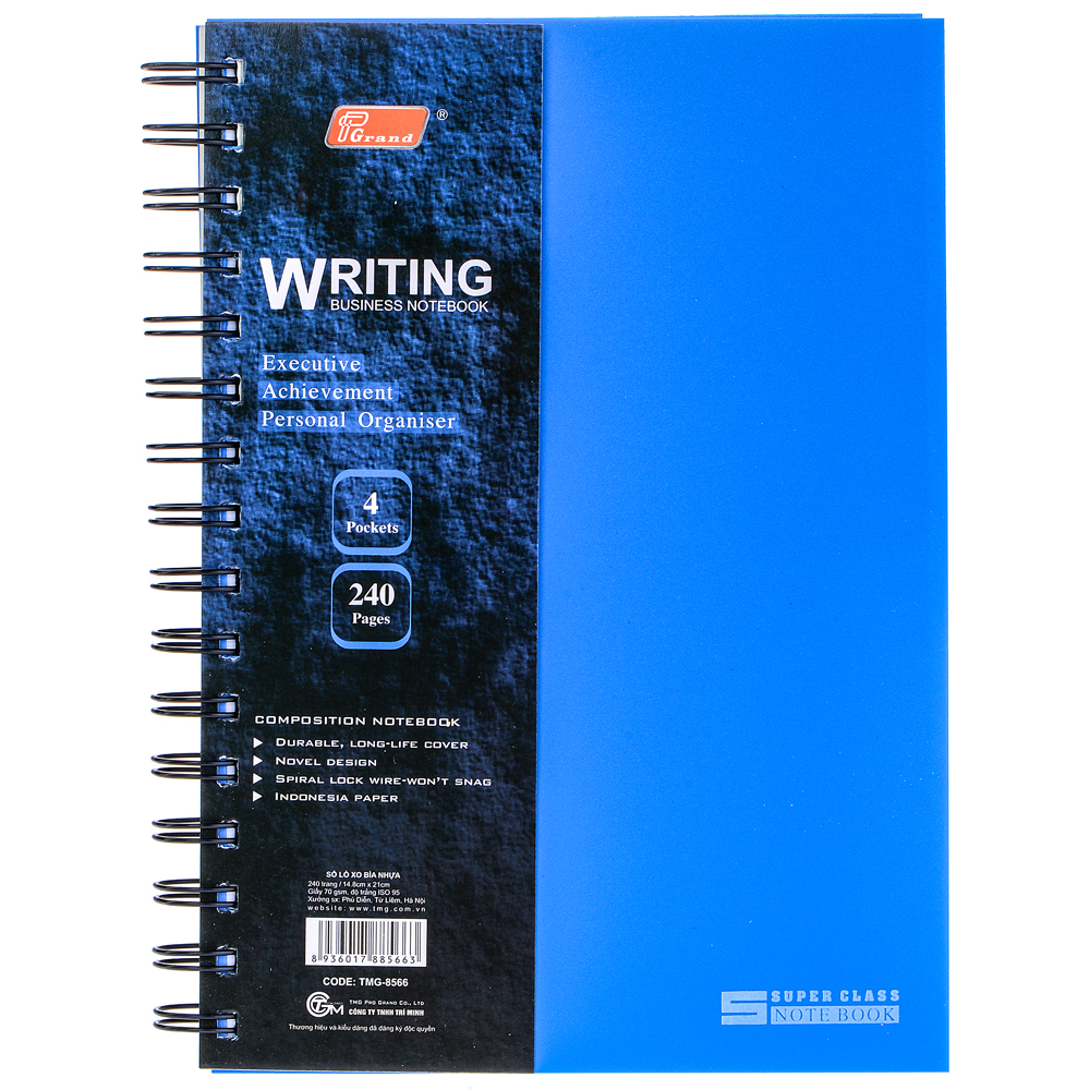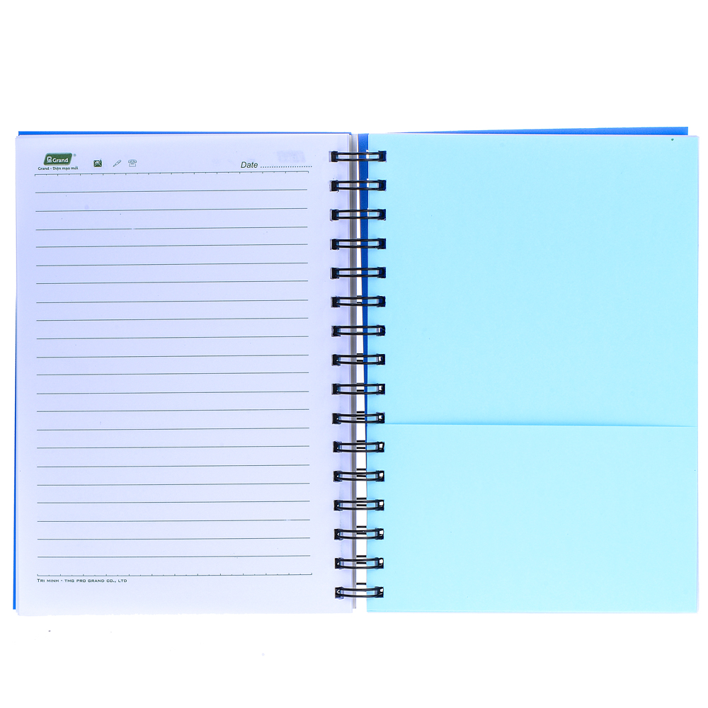 Sổ Lò Xo Grand A5 240 Trang Bìa Nhựa với kích thước khổ A5 vừa phải, bạn vừa có thể dễ dàng mang theo, vừa có thể ghi chép lại một số lượng lớn thông tin hoặc vẽ các hoạ tiết lớn. Phần gáy được đóng cuốn bằng lò xo, giúp việc lật mở trở nên tiện lợi và dễ dàng. Bìa được làm bằng nhựa, bền chắc, chống thấm tốt, giúp bảo vệ phần ruột giấy bên trong một cách tối ưu.