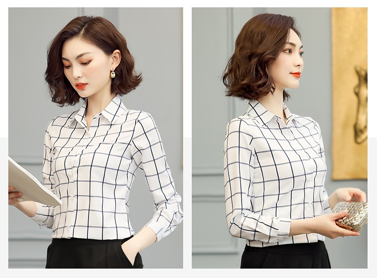 Sơ mi nữ công sở phối caro 150