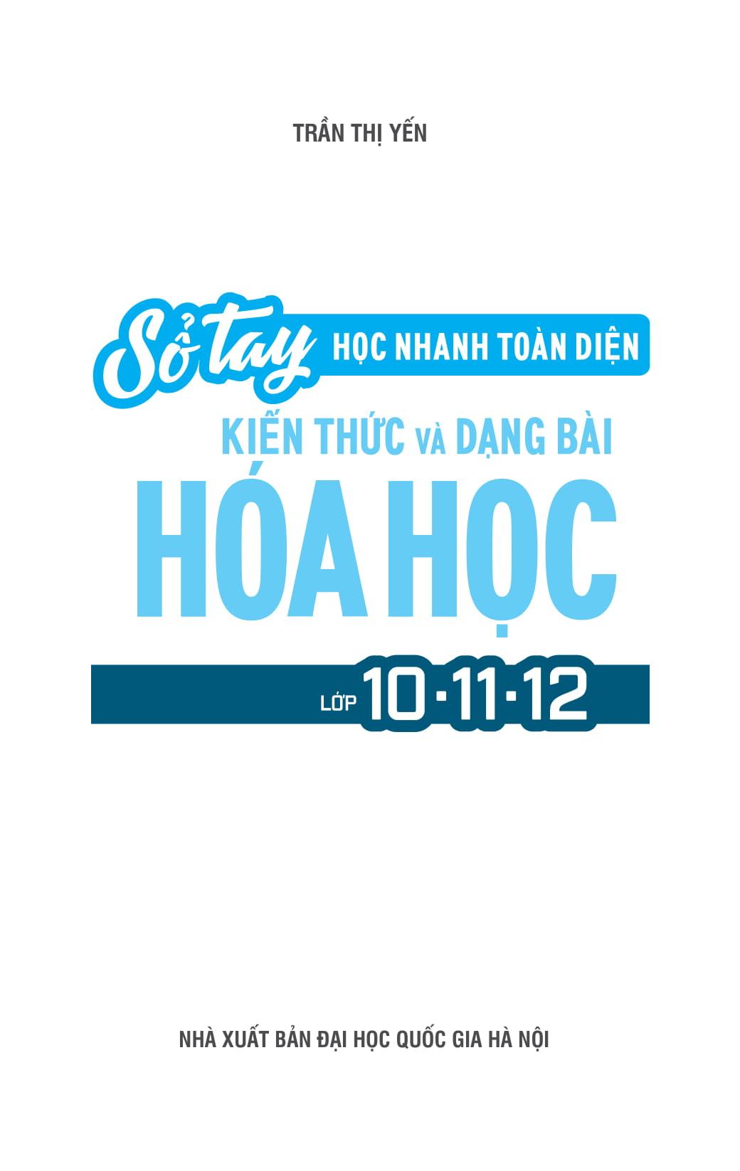Sổ Tay Học Nhanh Toàn Diện Kiến Thức Và Dạng Bài Hóa Học Lớp 10 - 11 - 12