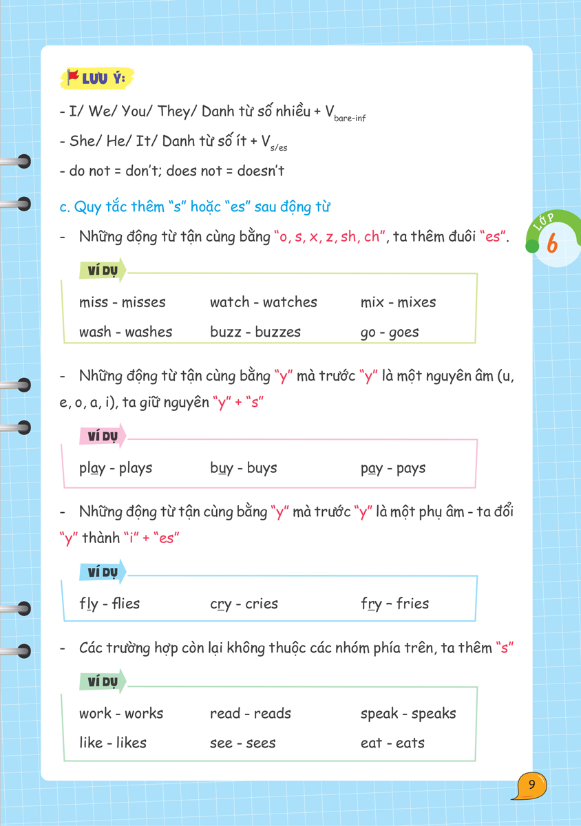 - Lời giải chi tiết, dễ hiểu Hệ thống lời giải chi tiết với đầy đủ dịch nghĩa, được trình bày rõ ràng, cụ thể, không chỉ giúp các em tự đánh giá năng lực mà còn cung cấp cho các em nhiều kiến thức hữu ích để nâng cao hiểu biết. Chúng tôi hi vọng rằng cuốn sách Sổ Tay Ngữ Pháp Và Bài Tập Tiếng Anh Lớp 6-7-8-9 sẽ luôn là người bạn đồng hành của các em học sinh và là sự tin tưởng của các thầy cô giáo và các quý vị phụ huynh!