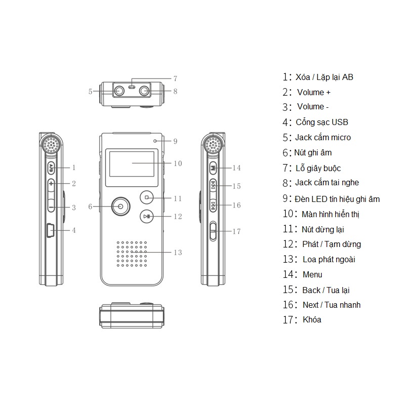 TÍNH NĂNG CƠ BẢN - Hỗ trợ đa ngôn ngữ (không bao gồm tiếng Việt). - Ghi âm đơn giản chỉ với 1 nút record. - Giao diện trực quan, dễ sử dụng - Có