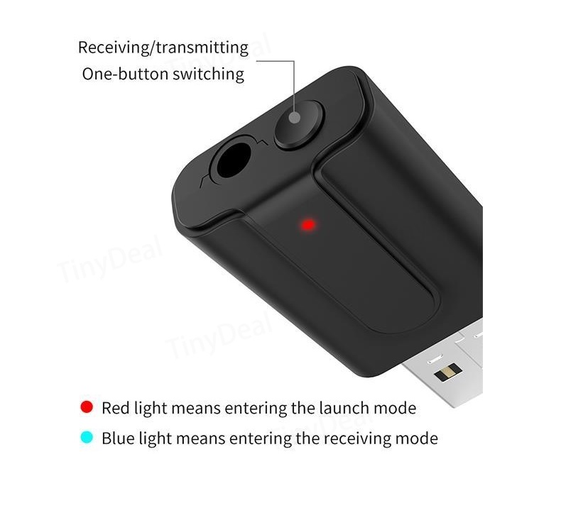 Thông số kỹ thuật sản phẩm: Loại: Bộ chuyển đổi âm thanh Bluetooth Phiên bản Bluetooth: 5.0 Điện áp đầu vào: DC5V Giao diện đầu vào: 3,5mm Giao diện: USB Khoảng cách tín hiệu truyền:
