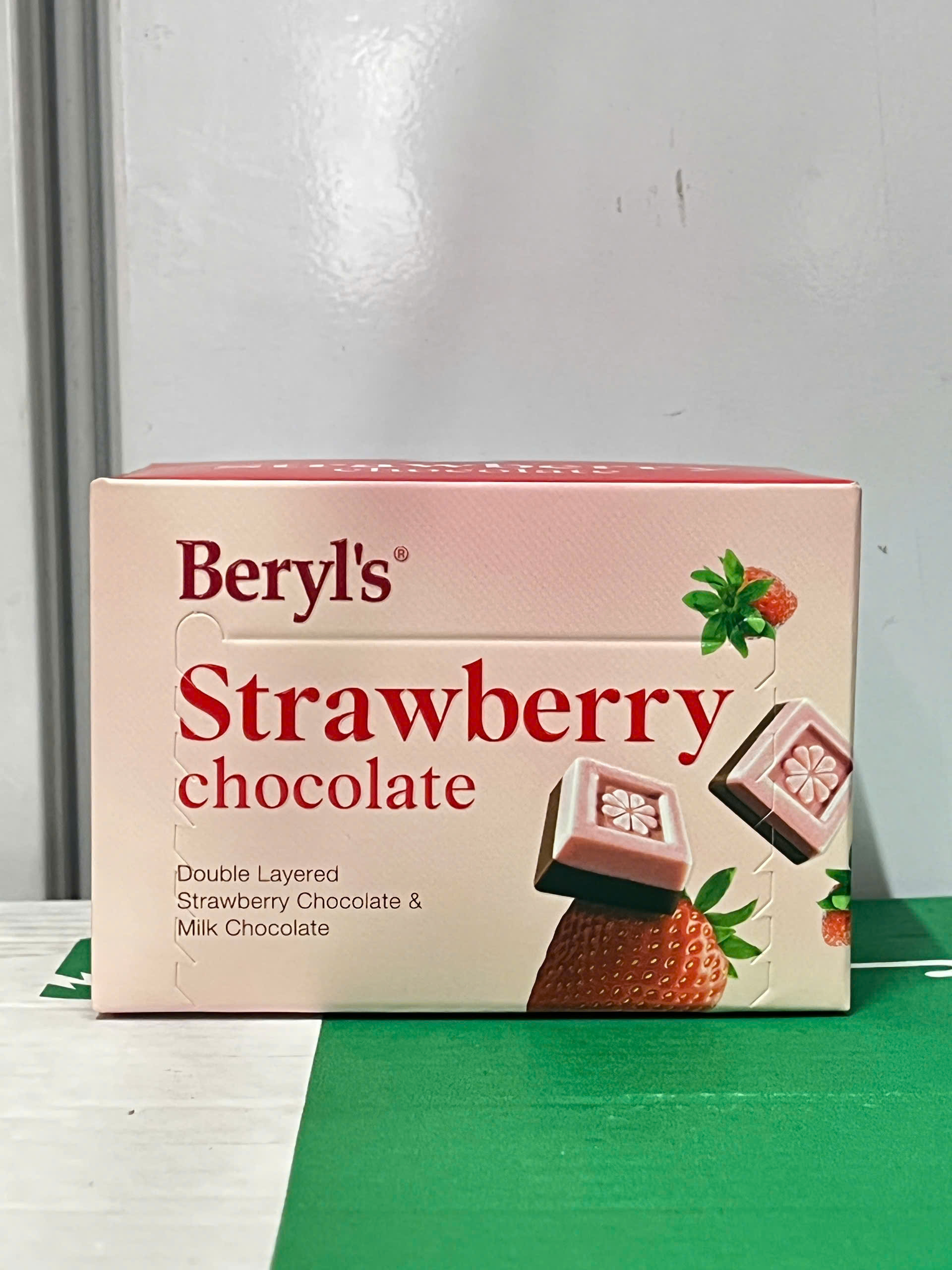 Socola dâu Beryl's 60g - Beryl's Strawberry & Milk Chocolate Xuất xứ; Malaysia Thành phần : Sugar, Full Cream Milk Powder, Cocoa Butter, Cocoa Mass, Vegetable Fat (Palm Oil, Sunflower Oil), Strawberry Powder (Glucose Syrup,
