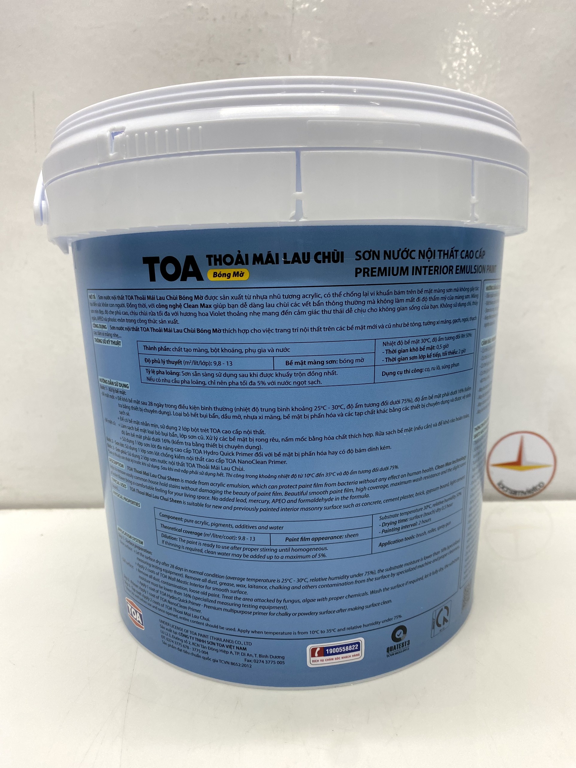 Sơn nước nội thất cao cấp Toa Nanoclean màu xám 8268_ 15L (HÀNG PHA MÀU, VUI LÒNG KHÔNG ĐỔI HOẶC TRẢ HÀNG) - Được chế tạo từ nhựa acrylic nguyên chất với công nghệ tiên