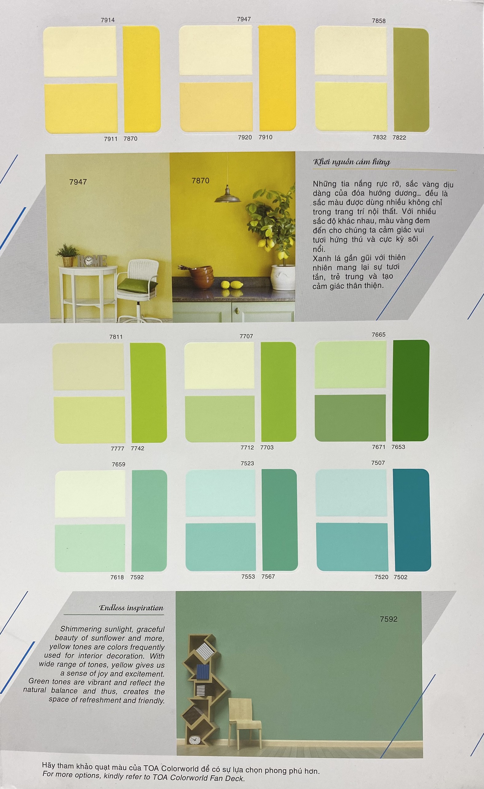 Sơn nước Toa thoải mái lau chùi nội thất màu vàng 7923 _5L Sơn nước nội thất cao cấp TOA Thoải Mái Lau Chùi Bóng Mờ được sản xuất từ nhựa nhũ tương acrylic, có thể