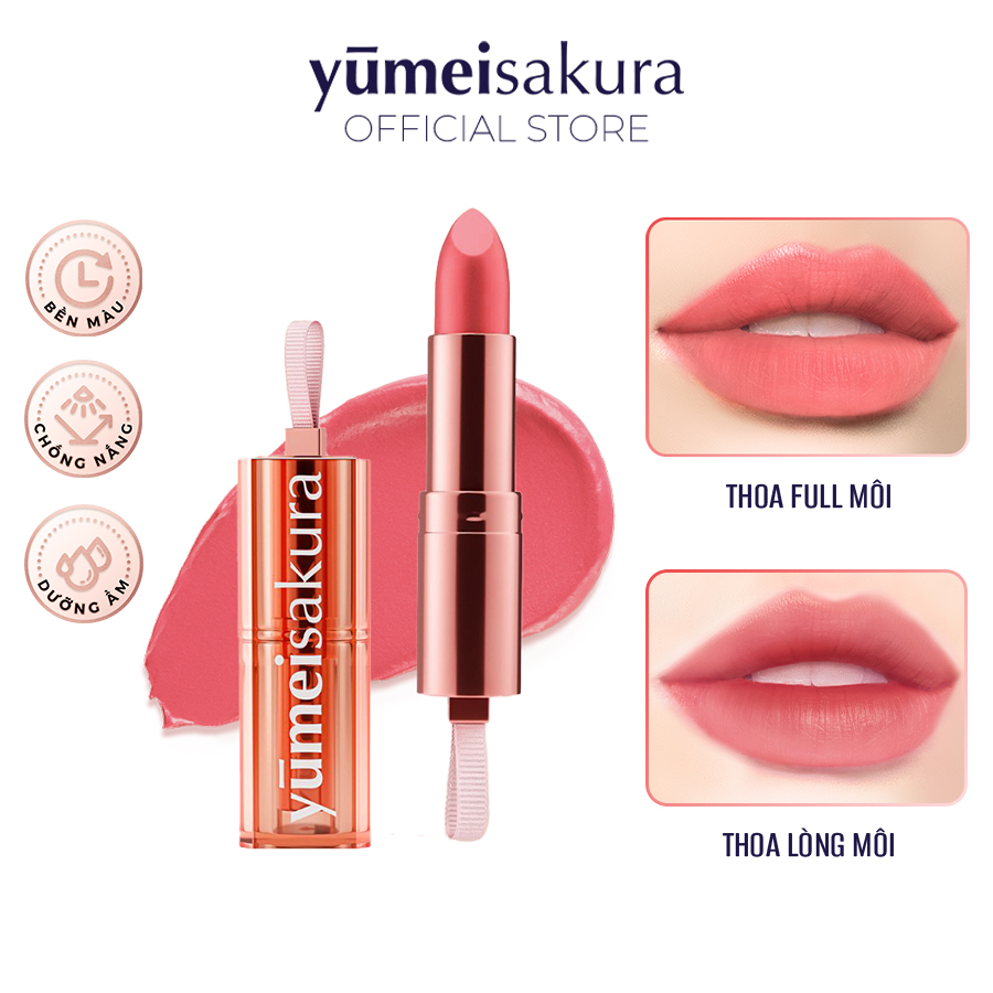 - Dùng thay thế phấn má hồng và phấn mắt để tạo lớp makeup hài hòa tươi sáng. Với gò má, chấm son lên vùng xương gò má, sau đó tán đều xếch lên hai mang tai. Với mắt, dùng đầu son để nhấn vào giữa mắt rồi dùng tay để tán đều ra 2 bên. GIỚI THIỆU VỀ BST SON LÌ CHOTTO MATTE Trong tiếng Nhật, Chotto Matte có nghĩa “chờ một chút”, trong đó, chotto là một chút và matte là chờ. Chotto Matte - Chờ một chút là câu cửa miệng mà chắc hẳn bất kỳ cô gái nào cũng đã vài lần thốt lên như thế. Chờ một chút dặm lại miếng son, thoa thêm chút phấn,... tất cả cũng là vì để xuất hiện thật xinh đẹp trước thế giới đang chờ ngoài kia. Yêu nhiều hơn! Vui nhiều hơn! Xinh nhiều hơn! Với một chút son đến từ bộ sưu tập Chotto Matte của nhà Yumeisakura. BẢNG MÀU VỚI 08 MÀU SON THỜI THƯỢNG: Tháng 05/2023, Yumeisakura chính thức chào đón thêm 3 màu son mới “quen mà lạ, lạ mà quen” vào bảng màu đa sắc son ChottoMATTE. YMS11 - Kiss Me Maroon - Đỏ gạch (Mới): Nụ hôn nồng nàn khiến bao trái tim thổn thức YMS18 - Milky Orange - Cam sữa (Mới): Sự kiêu sa đầy quyến rũ của phụ nữ hiện đại YMS19 - Sweetie Coral Pink - Hồng san hô (Mới): Tô điểm nét duyên dáng đầy khí chất YMS03A - Pumpkin Orange - Cam Bí Ngô: Bùng nổ năng lượng sôi nổi tích cực YMS07 - Candy Apple - Đỏ Cam: Thỏa đam mê nổi bật YMS15 - Love Me Tony Pink - Hồng Đất: Dịu dàng, nữ tính và ngọt ngào YMS16 - Bronze Orange - Cam Nâu Đất: Tôn vinh nét phóng khoáng, cá tính độc bản YMS17 - Burgundy Red - Đỏ Rượu Sẫm: Quyến rũ, sang trọng và quyền lực Sở hữu những màu sắc trendy, thời thượng và lôi cuốn, 8 màu son của Yumeisakura hứa hẹn sẽ khiến hàng triệu cô gái mê mệt trước sự quyến xinh đẹp, quyến rũ này! THIẾT KẾ MỚI ĐỘC ĐÁO VÀ ẤN TƯỢNG Thiết kế lấy cảm hứng từ những viên tinh thể trong suốt, sắc hồng rose gold thời thượng tạo nên vẻ ngoài sang trọng độc đáo nhưng cũng không kém phần tiện dụng khi có thêm chi tiết khóa treo son giúp dễ dàng mang theo bên người. CÁCH BẢO QUẢN