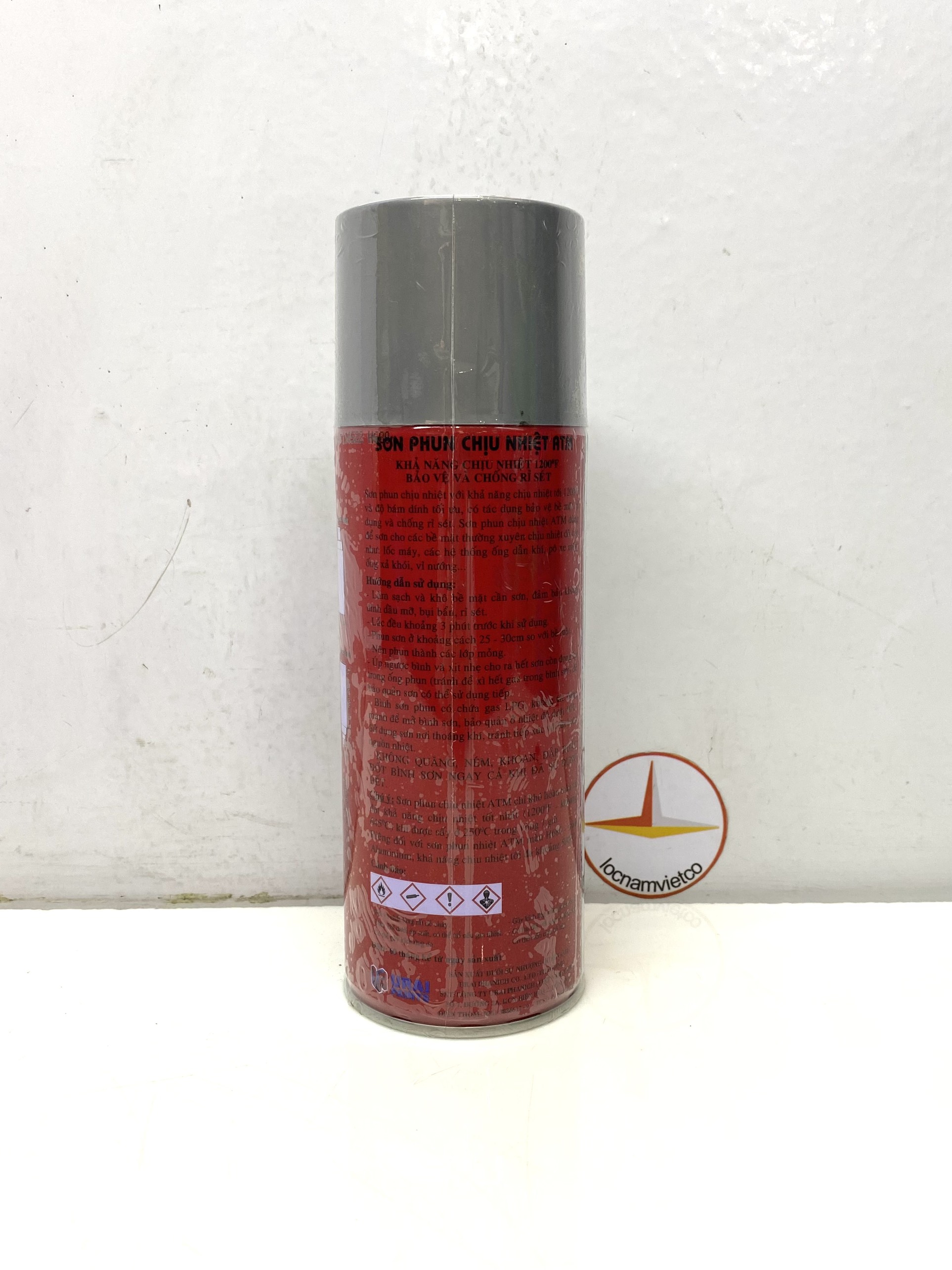 - KHÔNG QUĂNG, NÉM, KHOAN, ĐẬP HOẶC ĐỐT BÌNH SƠN NGAY CẢ KHI SỬ DỤNG HẾT. Chú ý: Sơn phun chịu nhiệt ATM chỉ khô hoàn toàn và đạt khả năng chịu nhiệt tốt nhất (12000F - khoảng 6450C) khi được sấy ở 2500C trong vòng 1 giờ. Riêng đối với sơn phun chịu nhiệt ATM màu H680 - Aluminium, khả năng chịu nhiệt tối đa khoảng 5000C. Thành phần: Nhựa silicon, dung môi, bột màu, LPG và một số thành phần khác. HSD: 60 tháng kể từ ngày sản xuất.