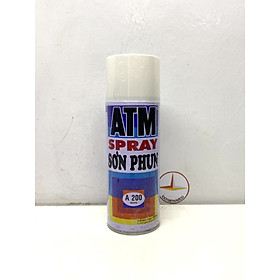 Mua tại TiktokSơn xịt màu trắng ATM A200 SƠN PHUN “ATM” ACRYLIC: Đặc chế từ hỗn hợp nhựa N/C và ACRYLIC, được đóng gói dưới dạng bình xịt cầm tay rất tiện dụng, dùng sơn để trang trí cho các bề mặt bằng gỗ và kim loại như: đồ gia dụng, bàn, ghế, đồ chơi trẻ em, xe đạp, xe máy