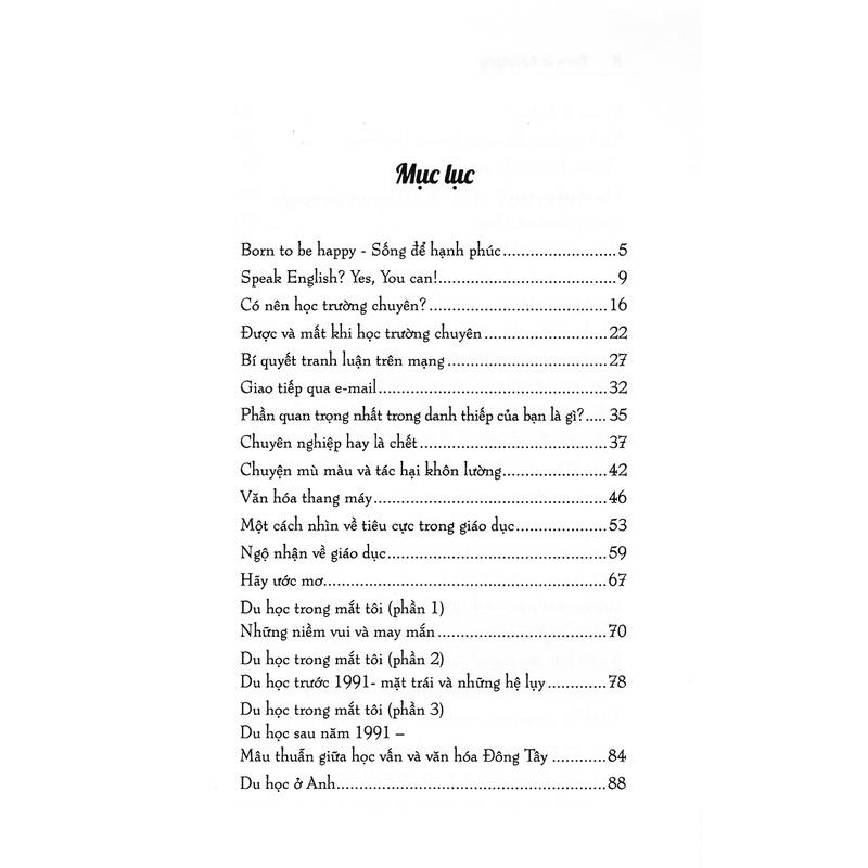 Mua tại TiktokSống Để Hạnh Phúc Cuốn sách là một chuỗi những cuộc trò chuyện giản dị của cô Nguyễn Hoàng Ánh về nỗi bất an của xã hội này: Trăn trở làm người, tìm ra được giá trị của bản thân, và mục đích chúng ta sống! Đây là những chia sẻ hết sức hữu ích dành cho các bạn trẻ và bậc làm cha mẹ, giúp chúng ta trả lời các câu hỏi: -Có nên học trường chuyên? -Chúng ta có thực sự đặc biệt không? -Thế nào là học giỏi, thế nào là thành công? -Làm giáo viên sướng hay khổ? -Vì sao đi du học? -Con cái chúng ta có thực sự có quyền sống hay không? Ta mong đợi và gửi gắm rất nhiều vào giáo dục Việt Nam, nhưng chúng ta cũng buộc phải tìm cách tự trả lời những câu hỏi trước cánh cửa cuộc đời. Du học, bằng cấp, niềm say mê, ước mơ trên ghế giảng đường, cuộc sống náo nhiệt từ Face book và tâm hồn cô quạnh của giới trẻ… Mỗi bài viết trong Born to be happy đều có khả năng khơi gợi bạn tự tìm ra nhiều cách trả lời khác nhau cho cuộc sống phía trước! Tác giả Nguyễn Hoàng Ánh kêu gọi giới trẻ ước mơ, và băn khoăn về những vị phụ huynh mãi không chịu trưởng thành. Cuộc sống học đường trong cuốn sách thực ra là một hành trình tự định vị bản thân, dũng cảm trải nghiệm sống, không ngừng mơ ước của tác giả. Tác giả Nguyễn Hoàng Ánh được hàng chục ngàn sinh viên ĐH Ngoại Thương yêu quý, cũng là người dẫn dắt, tạo cảm hứng, khích lệ rất nhiều bạn trẻ vững tin vào cách mình sống và mình cống hiến. Đọc sách và dũng cảm lên, vì chúng ta vốn sinh ra để sống hạnh phúc! (Nhà văn Trang Hạ) Tên Nhà Cung Cấp Alpha Books Tác giả Nguyễn Hoàng Ánh NXB NXB Hồng Đức Năm XB 02-2017 Số trang 220 Hình thức Bìa Mềm Sản phẩm bán chạy nhất Top 100 sản phẩm Kỹ năng sống bán chạy của tháng