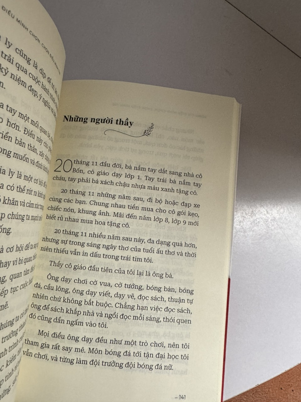 Cuốn sách là những câu chuyện gần gũi xung quanh cuộc sống của tác giả, từ gia đình cho tới môi trường công sở, từ những người bạn, cho tới người thân, người thương, cũng có những câu chuyện liên quan đến việc vượt qua tổn thương, cách sống một cách hạnh phúc, hay đơn giản là các bước nhỏ để thực hiện ước mơ…