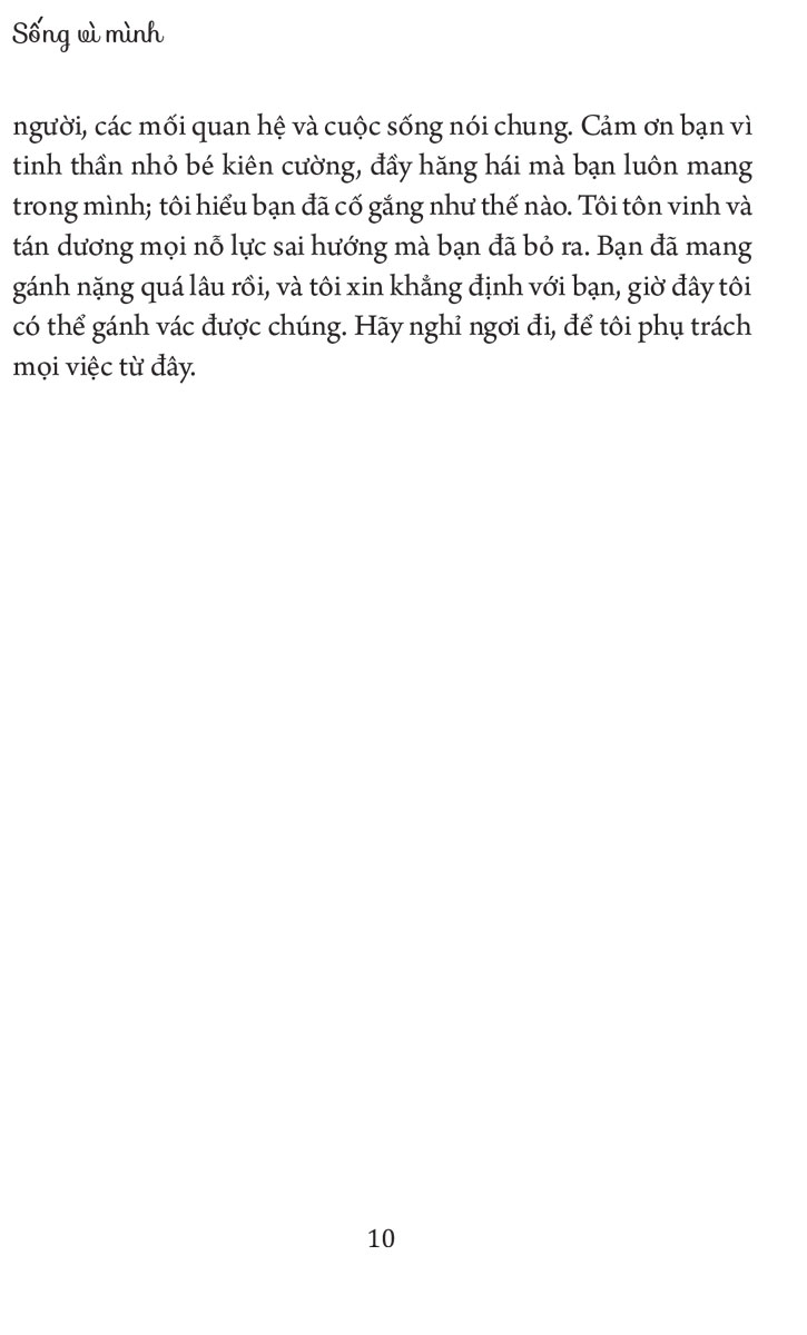 Mua tại TiktokSống Vì Mình Bạn có cảm thấy bất hạnh không? Bạn có cảm thấy bị đối xử tàn tệ không? Bạn có xu hướng nỗ lực rất nhiều trong mối quan hệ không? Bạn có kiệt quệ hay cạn năng lượng không? Bạn có cảm thấy không được trân trọng không? Bạn có đang làm việc quá sức không? Hay bị trả lương quá thấp không? Nếu câu trả lời là có cho một hoặc nhiều câu hỏi ở trên, cuốn sách này là dành cho bạn! Nếu bạn nhận ra những cảm giác này hoặc thấy mình ở trong bất cứ tình trạng nào như đã kể trên mà không thể thoát ra, đã đến lúc tự hỏi bản thân rằng mình đang cho phép điều gì xảy ra? Sự thật khó chấp nhận là, không có tình trạng nào trong số những tình trạng kể trên có thể tồn tại lâu dài mà không có sự cho phép của bạn. Nếu bạn đang ở trong những tình huống hoặc mối quan hệ chỉ đem lại cảm giác tiêu cực, thì có nghĩa là bạn đang tiếp tay hoặc chấp nhận một điều gì đó. Những trạng thái dài hạn này không ngẫu nhiên xảy ra mà cần đến sự thuận theo của họ. Cuốn sách là hành trình hướng vào các tổn thương bên trong Cuốn sách SỐNG VÌ MÌNH là một cuộc hành trình hướng vào bên trong, để bạn nhìn vào những gì bạn đang cho phép xảy ra trong cuộc sống của mình. Cuốn sách là món quà tri thức, sự thấu hiểu và các công cụ để giúp bạn chịu trách nhiệm hoàn toàn cho cuộc sống của mình. Cuốn sách là một hành trình nội tâm của công cuộc khám phá bản thân, sự trung thực và trách nhiệm cá nhân, để soi sáng những góc sâu kín nhất của cảm xúc, suy nghĩ, niềm tin, nhu cầu, thói quen, và khuôn mẫu hành động của bạn. Cuốn sách giúp bạn tự chịu trách nhiệm cho cuộc sống của mình Không phải lúc nào bạn cũng đạt được những gì mình muốn, nhưng như Mick Jagger đã hát: "Nếu thỉnh thoảng cố gắng, bạn sẽ tìm được những gì mình cần." SỐNG VÌ MÌNH, như cái tên của nó, dẫn bạn bước lên con đường tự chịu trách nhiệm cho hạnh phúc của chính mình. Con đường đó dẫn tới đâu? Mời bạn cùng Minh Long khám phá trong cuốn sách này, bạn sẽ không thất vọng!