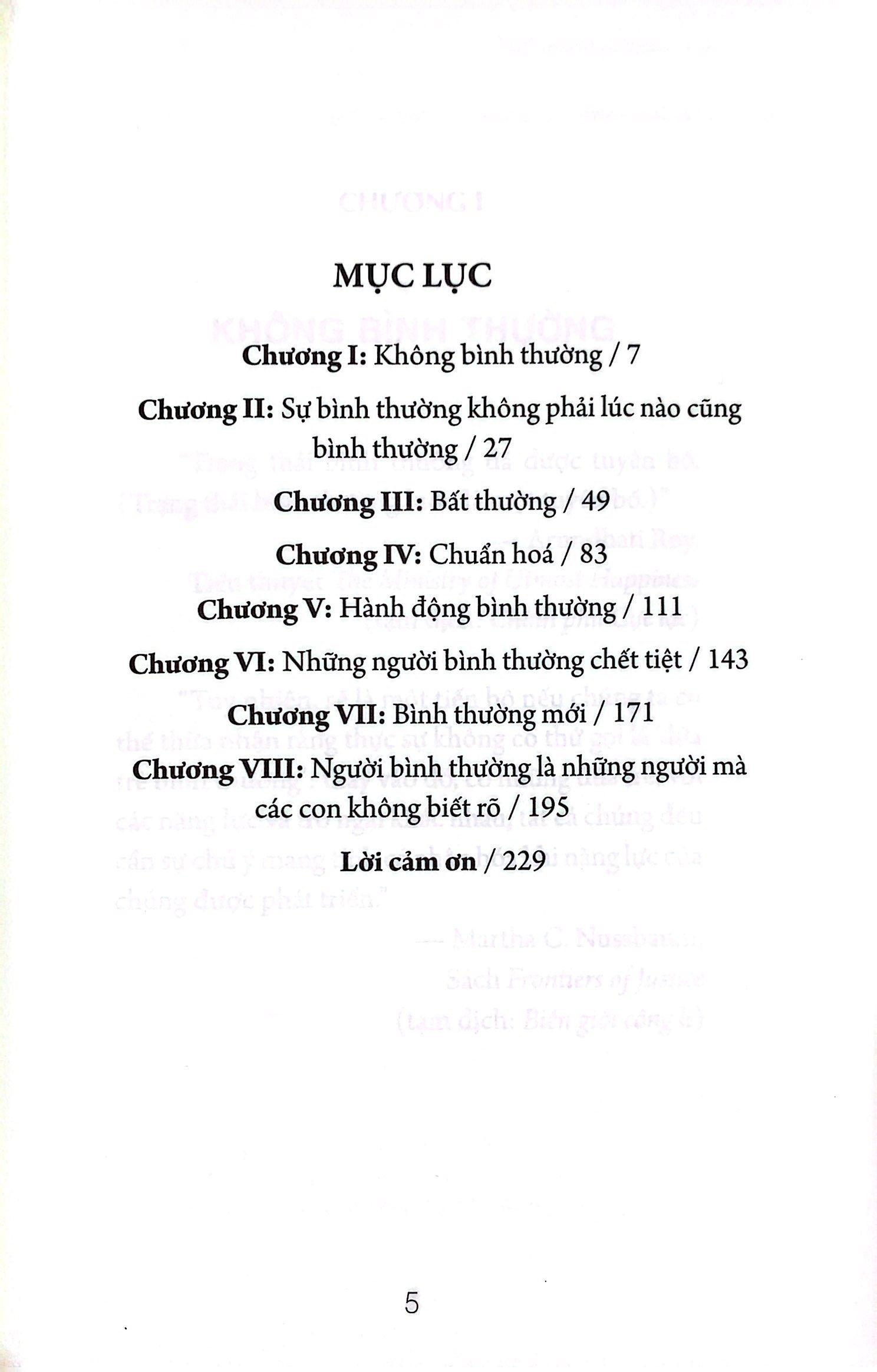 Cuốn sách Sự Bình Thường Chết Tiệt là cuốn sách giúp bạn sống, học hỏi, làm việc không cần tuân theo những khuôn khổ cứng nhắc. Cuốn sách sẽ cho bạn thấy rằng, những phần có thể bị gọi là "không bình thường" của các bạn đều có giá trị. Tất cả mọi người đều có quyền được khác biệt, và bạn cũng có quyền được giải phóng khỏi sự bình thường.