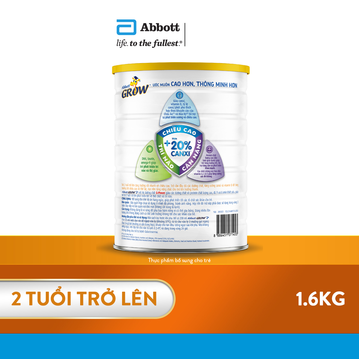 - Sữa bột Abbott Grow 2+ cho trẻ trên 2 tuổi. Thông tin dưới đây là thông tin trên nhãn sản phẩm đã được cơ quan có thẩm quyền phê duyệt.
