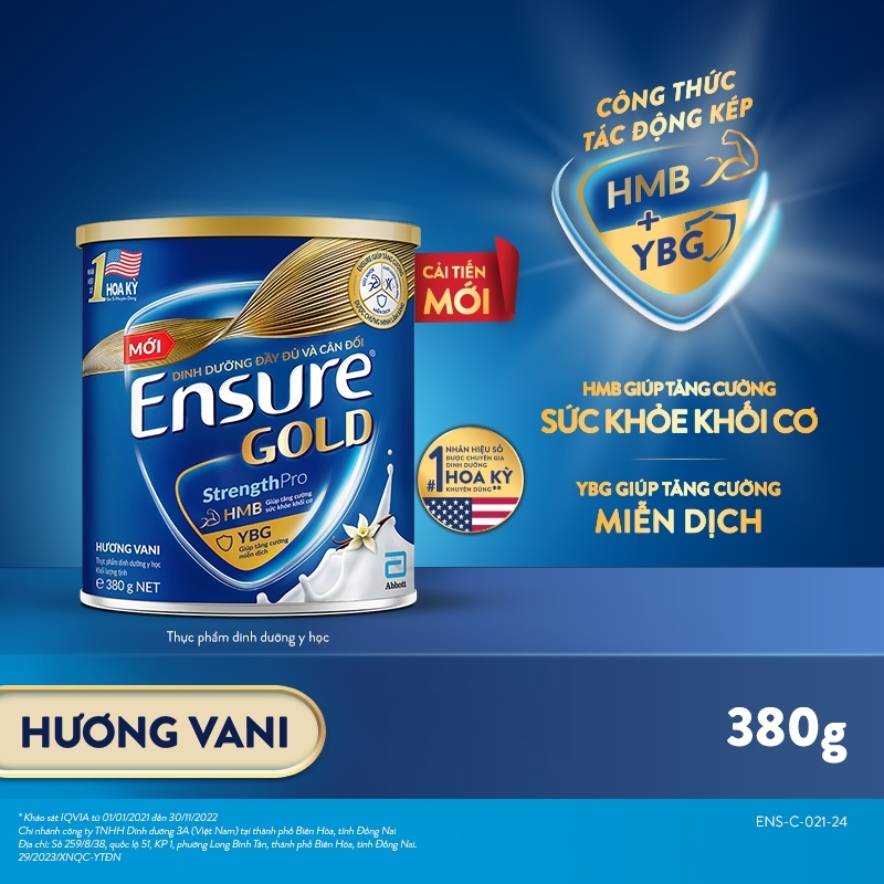 ✨Sữa Bột Ensure Gold Abbott Hương Vani Truyền Thống (HMB) 400g/380g Giúp Tăng Cường Miễn Dịch & Sức Khỏe Khối Cơ