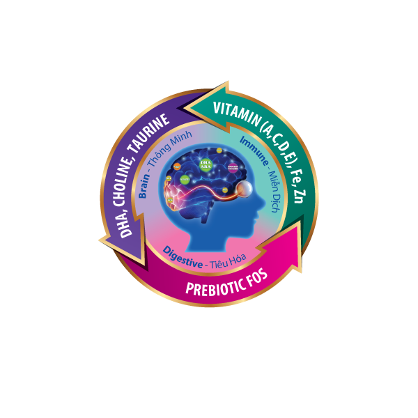 Omega 3 & Omega 6 Các dưỡng chất thiết yếu như DHA - TAURIN - CHOLIN - LUTEIN - AXIT FOLIC - LUTEIN - KHOÀNG CHẤT - Axít F giúp phát triển trí não của bé, tăng cường khả năng nhận biết và bảo vệ não khỏe mạnh.