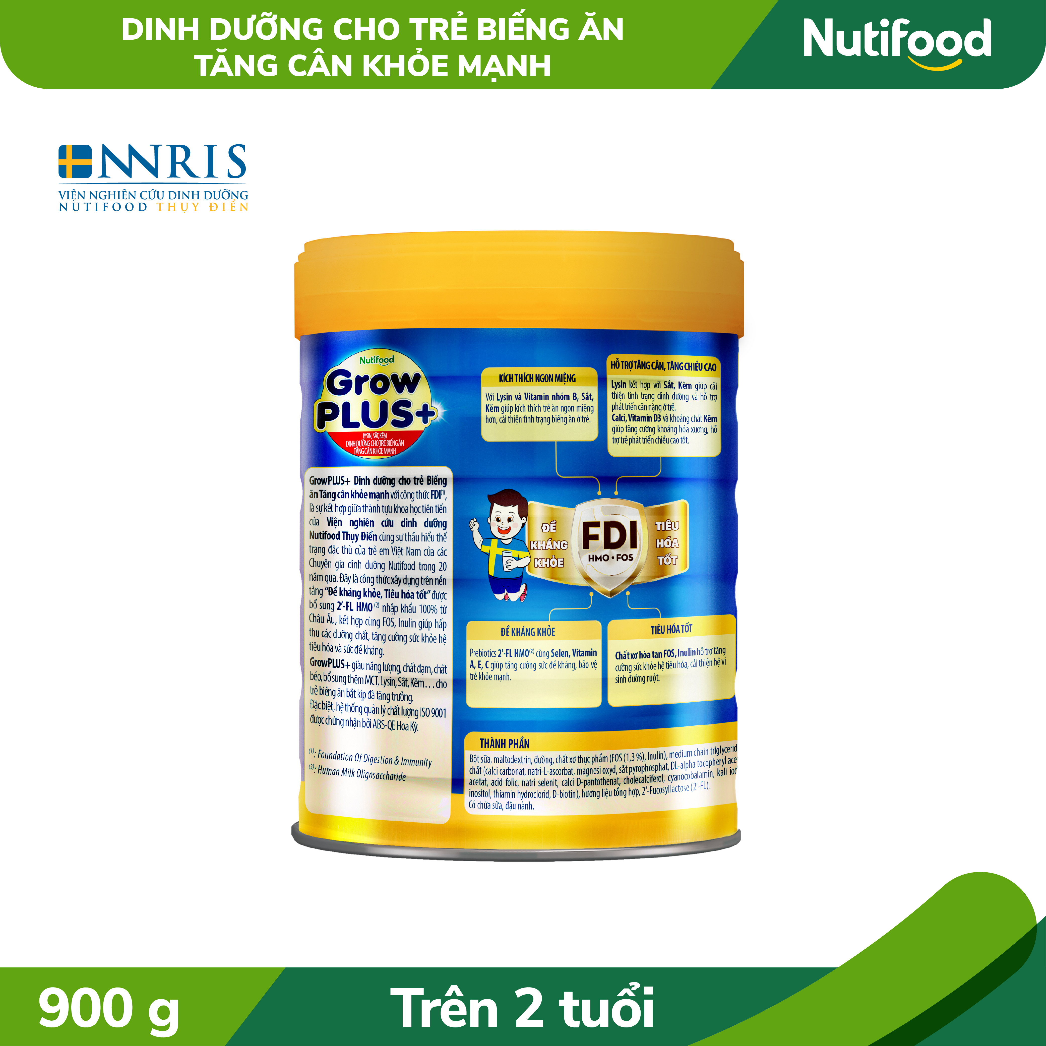 SỮA BỘT NUTIFOOD SWEDEN GROWPLUS+ TIÊU HÓA DÀNH CHO TRẺ TỪ 2 TUỔI (800G) Nutifood GrowPLUS+ với công thức được phát triển bởi Nutifood Thụy Điển, xây dựng nền tảng FDI(*) Đề kháng khỏe,