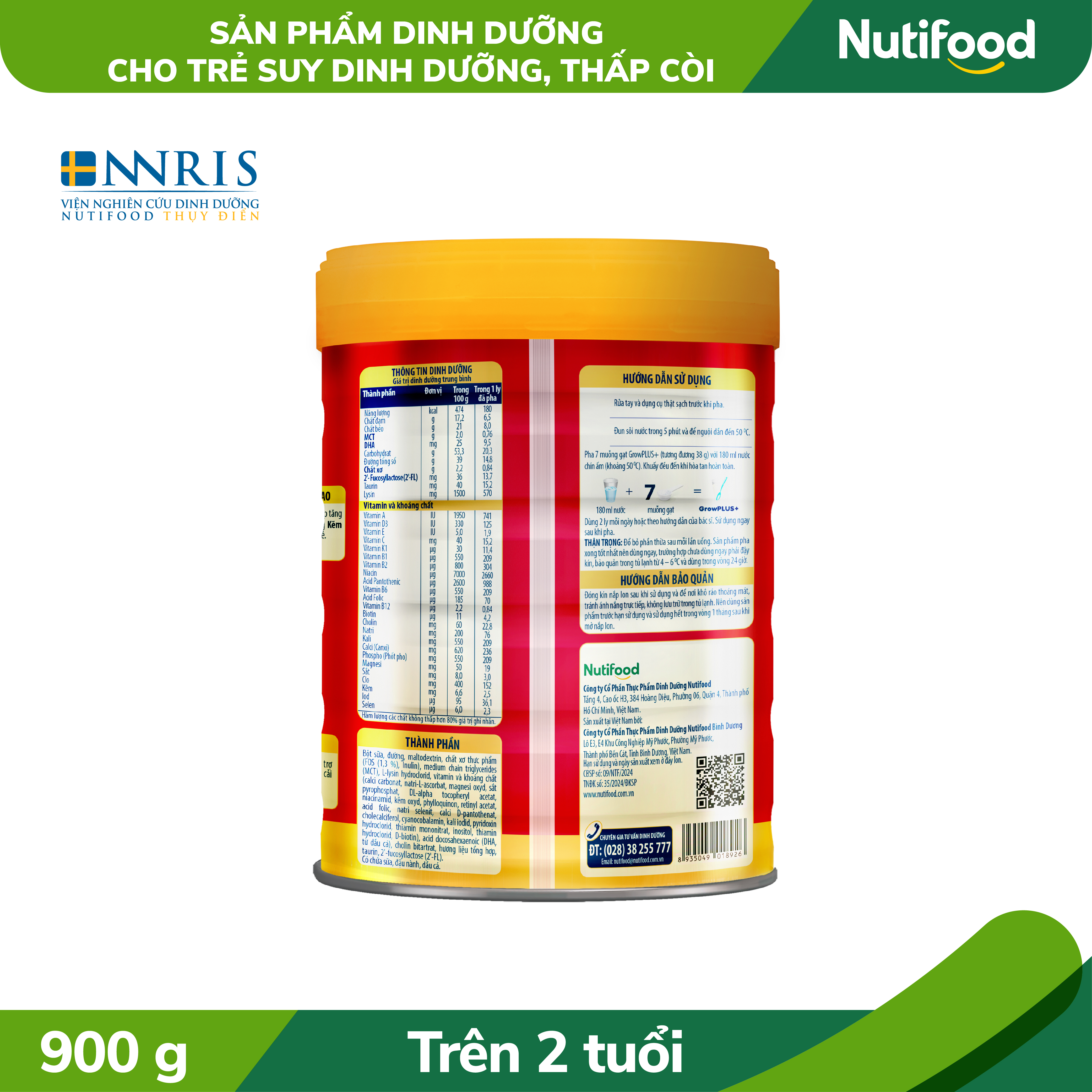 Mô tả sản phẩm: GrowPLUS+ - Dinh dưỡng cho trẻ Suy dinh dưỡng, thấp còi là sản phẩm của Nutifood với công thức FDI. Hơn 20 năm kinh nghiệm thấu hiểu nhu cầu dinh dưỡng đặc thù của trẻ em Việt, Nutifood đã hợp tác cùng các chuyên gia dinh dưỡng Thụy Điển cho ra đời công thức FDI. Đây là công thức xây dựng trên nền tảng “Đề Kháng khỏe, Tiêu Hóa tốt” được bổ sung 2'-FL HMO nhập khẩu 100% từ châu Âu, kết hợp cùng FOS, Inulin hỗ trợ hấp thu tốt các dưỡng chất, tăng cường sức khỏe hệ tiêu hóa và sức đề kháng. Bổ sung chất béo chuyển hóa nhanh MCT và Canxi, Sắt, Kẽm, Lysin, Vitamin D3 hỗ trợ phát triển cân nặng và chiều cao cho trẻ. GrowPLUS+ với hàm lượng DHA, kết hợp cùng Cholin, Taurin giúp trẻ hoàn thiện và phát triển não bộ, tăng khả năng học hỏi, ghi nhớ. Đặc biệt, hệ thống quản lý chất lượng ISO 9001được chứng nhận bởi ABS-QE Hoa Kỳ.
