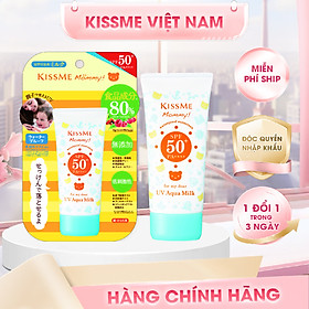 Mua tại TiktokSữa Chống Nắng Và Dưỡng Ẩm Dành Cho Bé Từ 6 Tháng Tuổi Và Làn Da Nhạy Cảm Kissme Mommy UV Aqua Milk (Dùng Được Cho Da Mặt) Thông tin sản phẩm: Số Lô: In trên sản phẩm Thương hiệu Kissme Xuất Xứ: Nhật Bản Khối lượng tịnh: 50g HSD: 5 năm kể từ ngày sản xuất Gel chống nắng MOMMY N có chỉ chống nắng SPF50 PA++++ (khả năng chống 96% tia cực tím, với thời gian gần 500 phút), được chiết xuất từ 80% thành phần thực phẩm, giàu hàm lượng dưỡng ẩm tự nhiên như: Tinh dầu hoa Jojoba, tinh dầu hạt Macadamia, quả mâm xôi, nha đam, đặc biệt sơ ri vuông từ Bắc Mỹ giàu hàm lượng Vitamin A,C,K,E ,B1,B12…vừa hỗ trợ chống nắng, vừa duy trì độ ẩm, tránh khô da, giúp cho da Bé luôn mịn màng, khoẻ đẹp. Dạng Gel mỏng nhẹ như nước, dễ thấm vào da, tạo cho làn da mỏng manh của Bé cảm giác nhẹ nhàng, không bết rít khó chịu trong quá trình sử dụng. Không chất phụ gia, không kích ứng da cho Bé. Sản phẩm chuyên có thể dùng cho cả Mẹ, và đặc biệt người có làn da nhạy cảm. Dễ dàng làm sạch khi rửa bằng nước. • CHUYÊN DỤNG CHO BÉ TỪ 06 THÁNG TUỔI VÀ NHỮNG BẠN CÓ LÀN DA NHẠY CẢM, PHỤ NỮ CÓ THAI…. 1/ Công dụng: